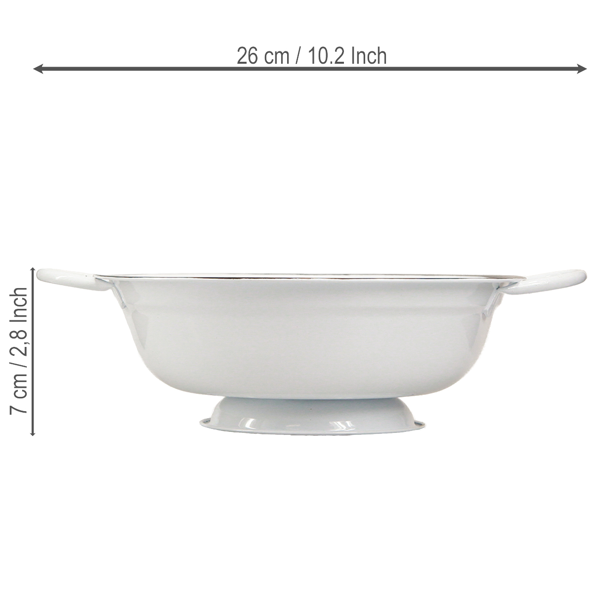 Onze metalen sierschalen in wit/zwart combineren stijlvolle elegantie met nostalgische charme en zijn de perfecte metgezel voor uw tafel- en kamerdecoratieprojecten. Deze metalen schalen overtuigen door hun zacht gebogen vorm en verfijnde emaille-look, die elke ruimte meteen een vintage tintje geeft. De drie schalen hebben elk een diameter van ongeveer 20,5 cm en zijn veelzijdig inzetbaar. Of het nu gaat om een ronde plantenschaal voor liefdevol gearrangeerde bloemstukken of als stijlvolle opberger voor kleine accessoires - deze schalen zetten altijd accenten.