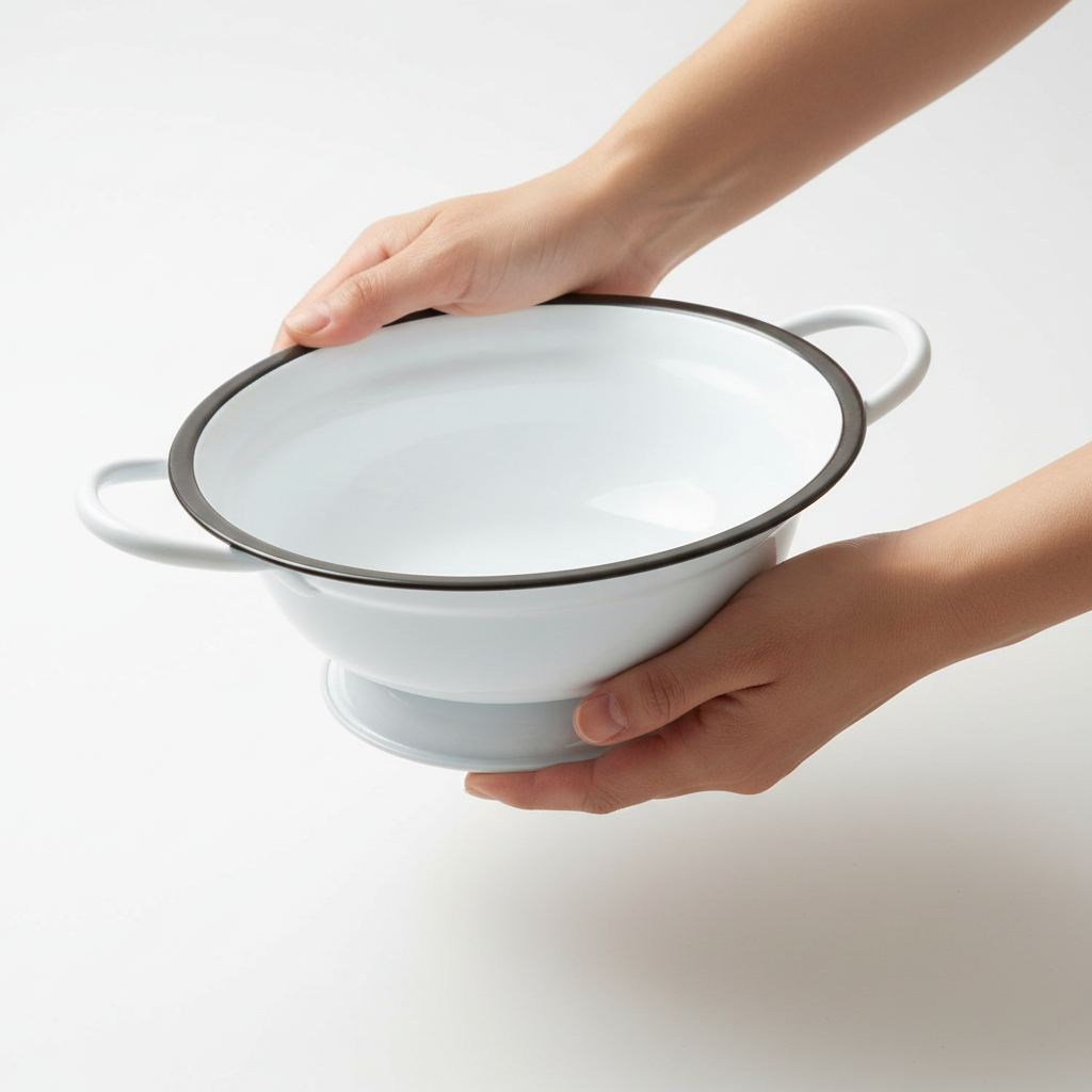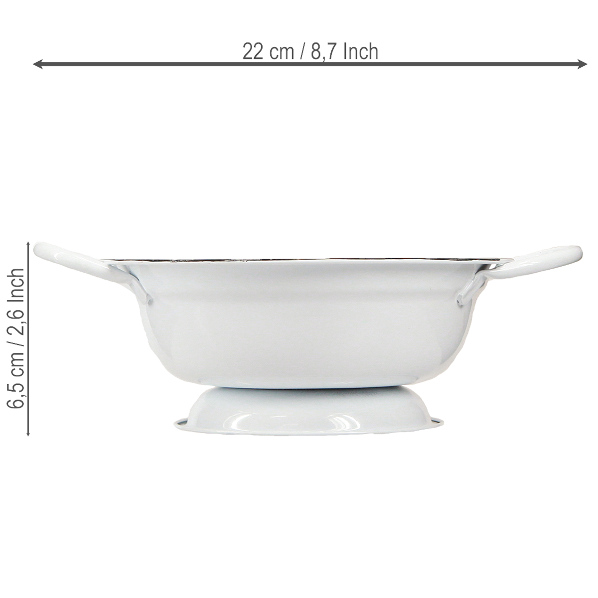 - Materiaal: Metaal in witte emaille look met zwarte rand