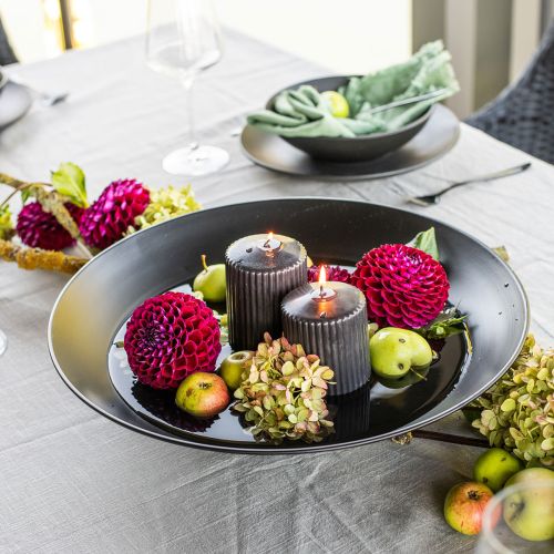 De zwart metalen schaal vindt u in een grotere vorm, vergelijkbaar met een vuurschaal, hier in onze winkel. Blader eenvoudig door ons assortiment decoratieve schalen.