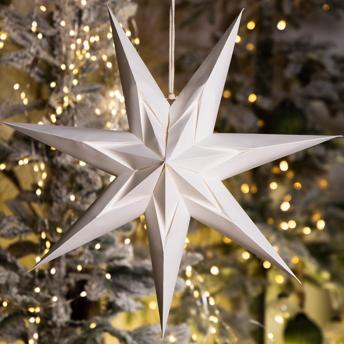 Alleen al met hun formaat van 45 cm zijn ze een echte blikvanger, en het elegante design past harmonieus in een breed scala aan stijlen, van tijdloos Scandinavisch design tot moderne kerstversiering. Heb je al een idee waar je deze papieren sterren in huis wilt hangen?