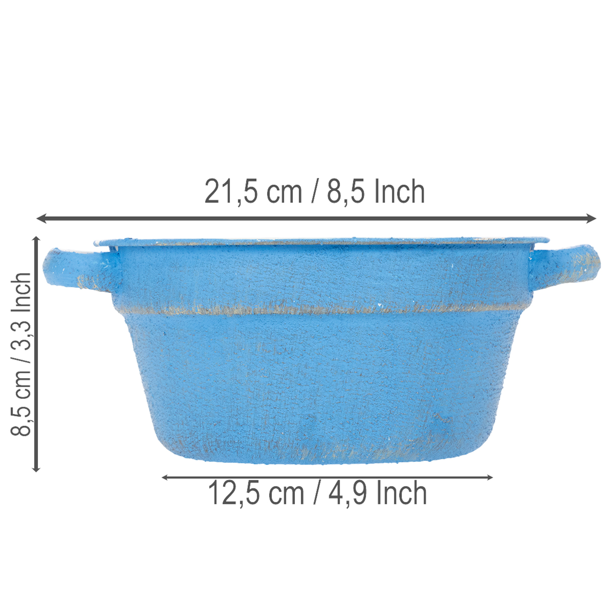 Decoratieve schaal/plantenbak, blauw metaal, shabby chic decoratie, Ø17cm, H8.5cm