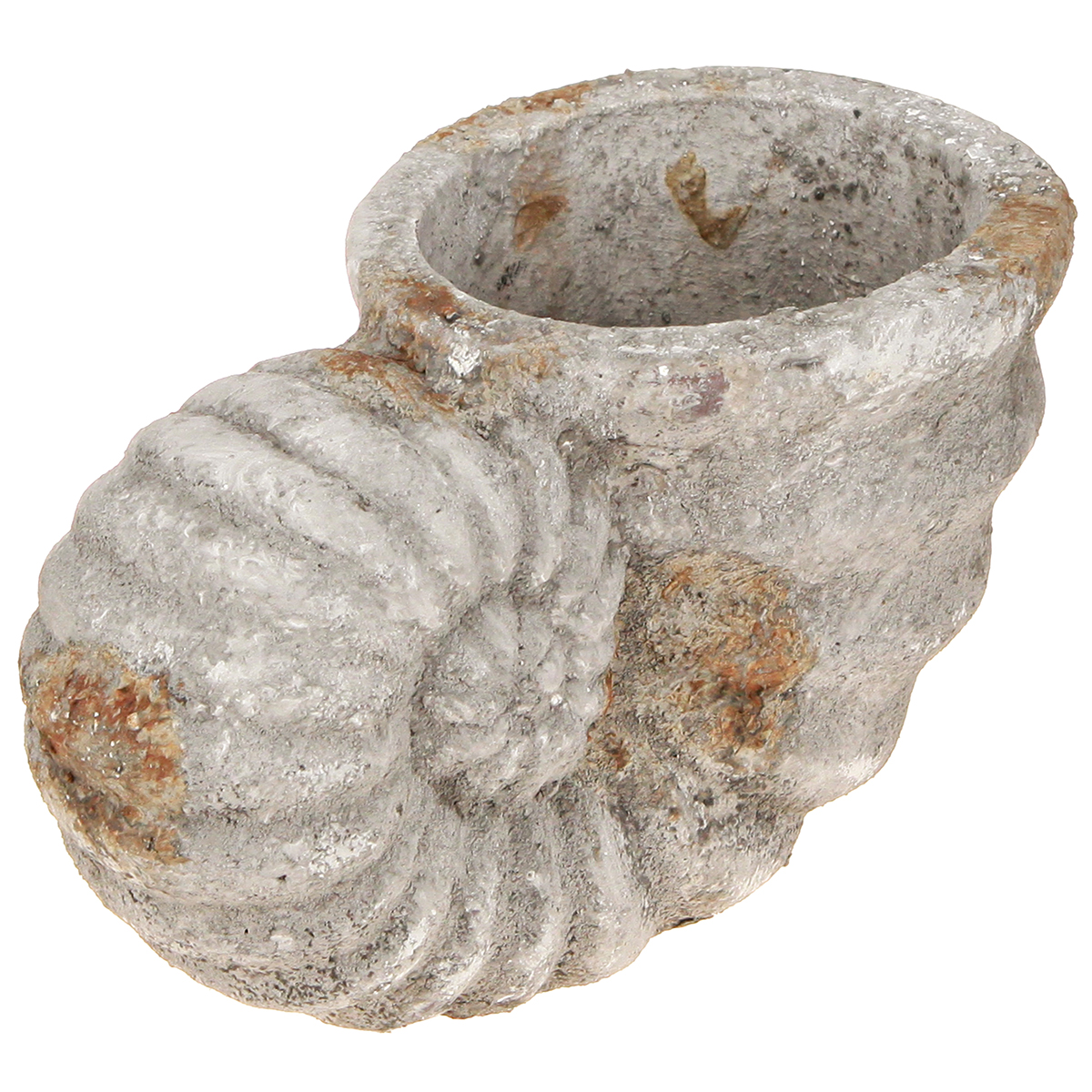 Ontdek de decoratieve schelp in steenlook als bloempot, die met zijn bijzondere design niet alleen schittert als praktische plantenbak, maar ook als stijlvolle tafeldecoratie voor de zomer. Deze bloempot van stevig beton overtuigt door de antieke afwerking, die hem een verweerde, vintage look geeft. Dankzij de kunstmatige roestvlekken en het gedetailleerde schelpontwerp roept het een vleugje van het geluid van de zee op in uw huis. Of het nu gaat om een decoratieve blikvanger in de woonkamer, een stijlvolle balkondecoratie of een hoogtepunt op het terras: deze bloempot van beton is veelzijdig en combineert functionaliteit met exclusieve esthetiek. Met een formaat van ca. 22,5 × 13,5 × 13,5 cm en een plantdiepte van ca. 10 cm is deze plant ideaal voor kleine bloemstukken en vetplanten. Rust uw maritieme vensterbankdecoratie of uw eethoek in de buitenlucht uit met dit charmante stuk en ervaar hoe het sfeervolle accenten zet in uw decoratieve concept.