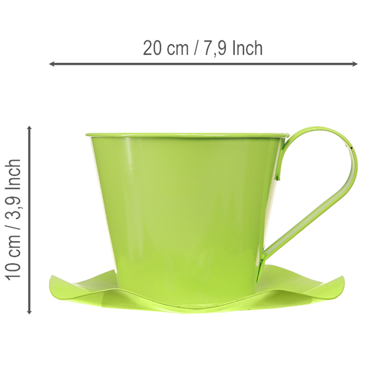 Decoratieve theekopjes van metaal met schotel, lichtgroen, Ø12 H10cm, 8 stuks