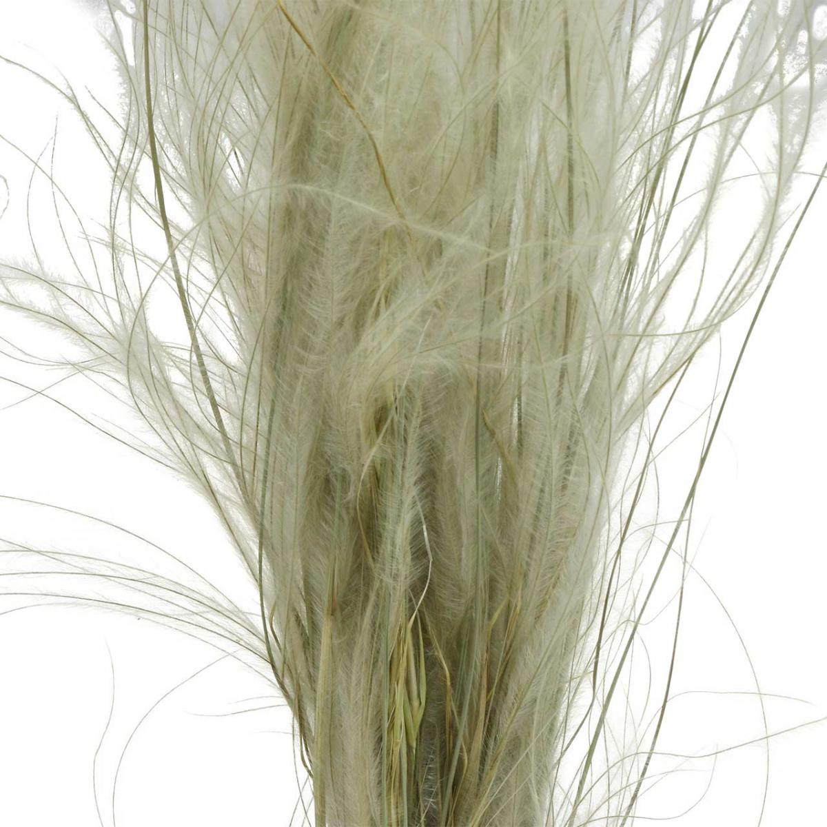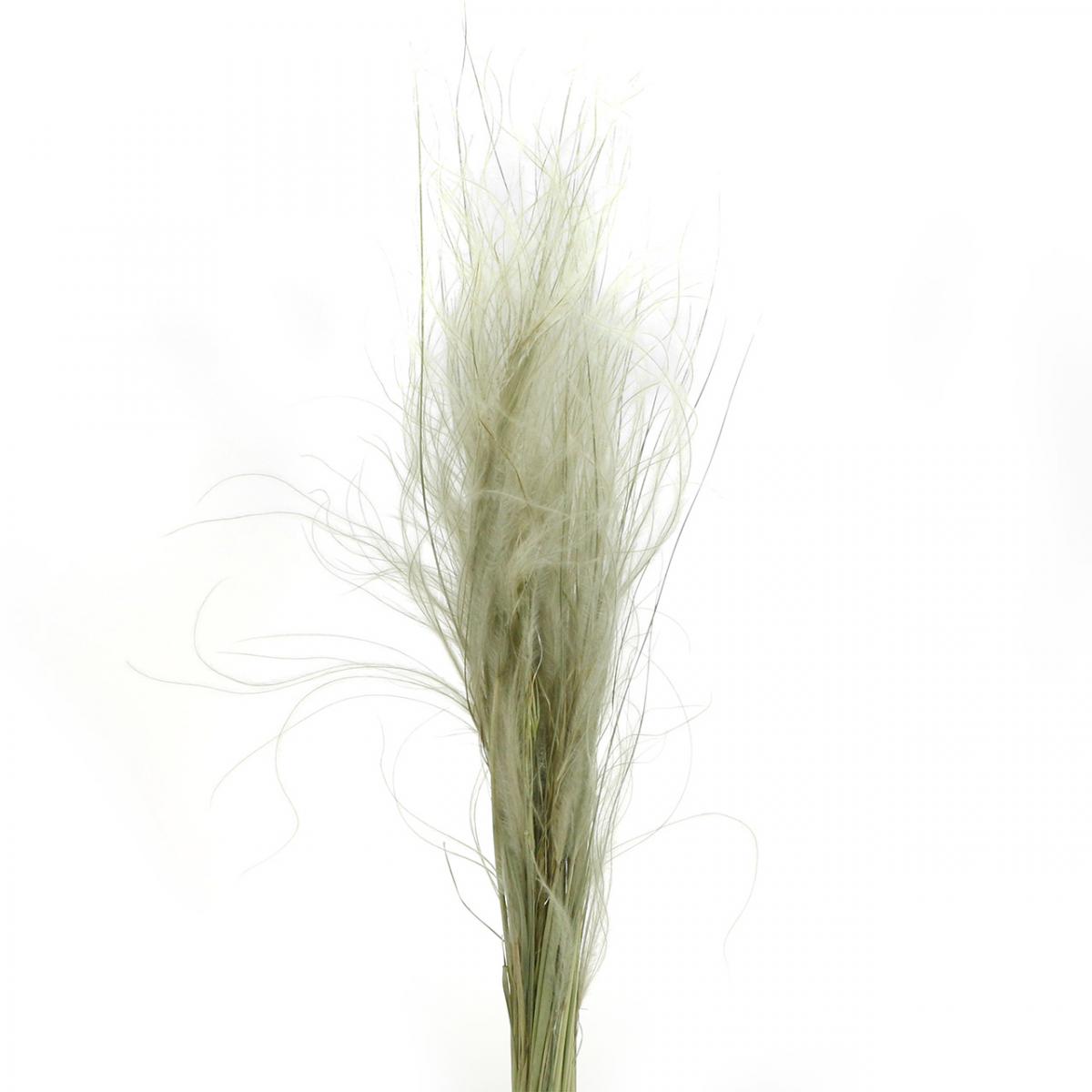 Met zijn lange steel is deze natuurlijk crèmekleurige en lichtgroene gedroogde plant een subtiele blikvanger in de natuurlijke kamerdecoratie. Door de zachte bewaring is het siergras zeer lang houdbaar en heeft het weinig verzorging nodig.