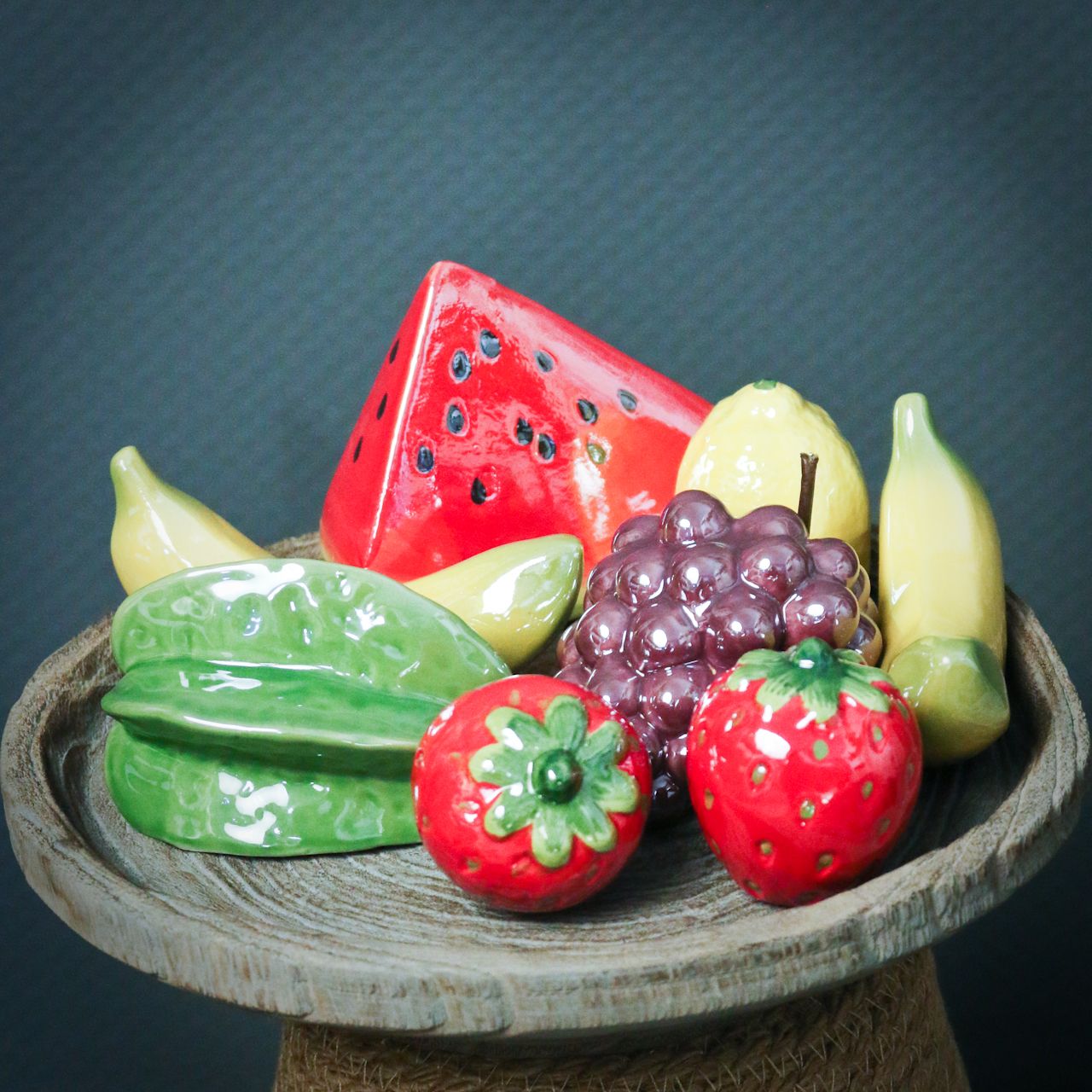 Of het nu in de keuken, in de woonkamer of als een aantrekkelijke restaurantdecoratie is, het decoratieve fruit van het nobele merk VIANA is een grote blikvanger. U kunt bijvoorbeeld een fascinerend accent in de ingang instellen door de decoratieve druif te plaatsen en misschien te rangschikken met echte wijnbladeren. Je kunt ook een mooie tafeldecoratie oproepen in combinatie met ander keramisch decoratief fruit. Plaats het fruit eenvoudig op een decoratieve schaal. Zo'n ensemble is het hele jaar door het hoogtepunt.