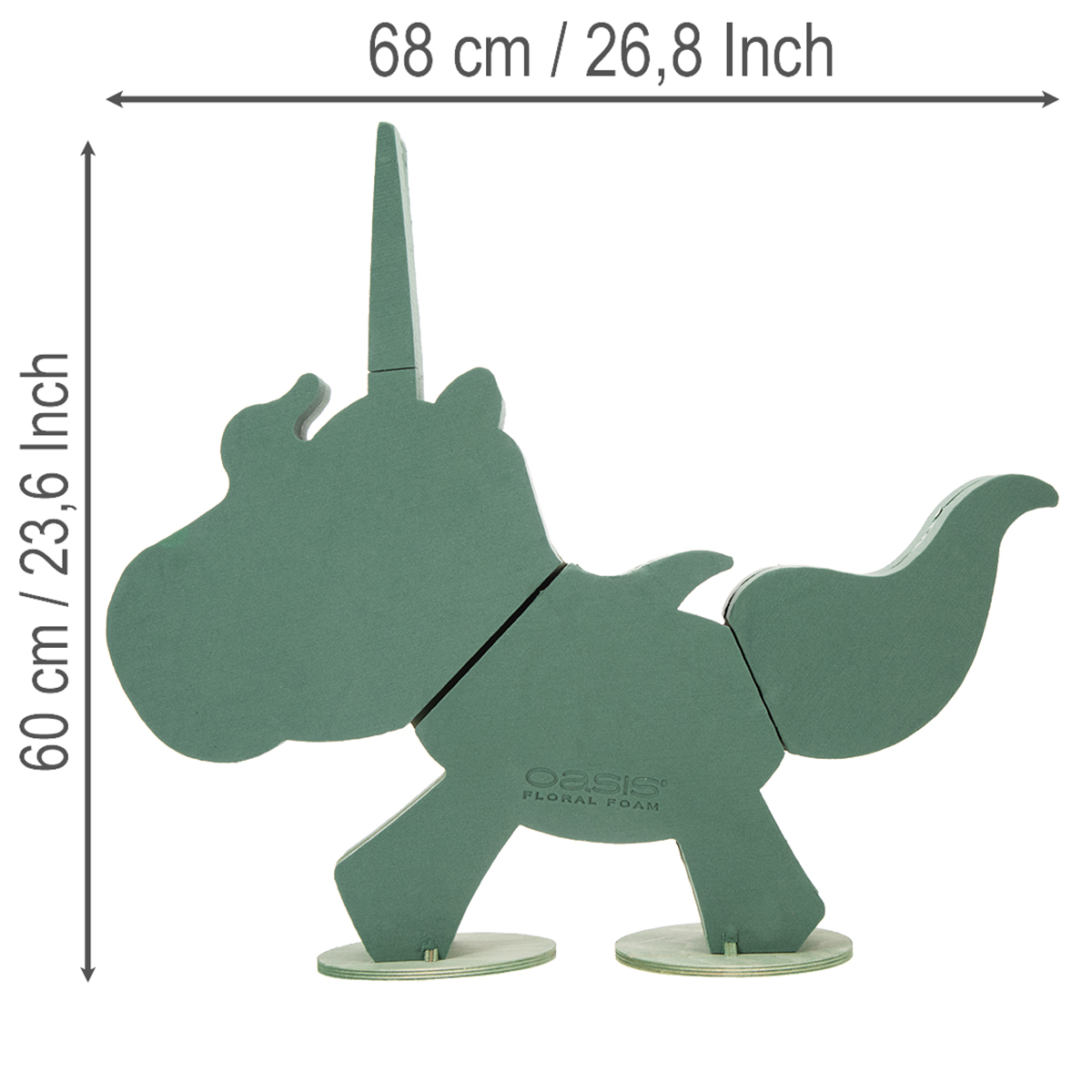 Koop de trendy eenhoorn. Creëer een betoverend originele sfeer op je volgende feest of evenement! De eenhoorn uit de OASIS® BIOLINE® serie bestaat voornamelijk uit groen natschuim. Het staat op twee stabiele, groenhouten sokkels. Het zeer milieuvriendelijke steekschuim is voorzien van snijlijnen. Deze minimaliseren uitdroging.