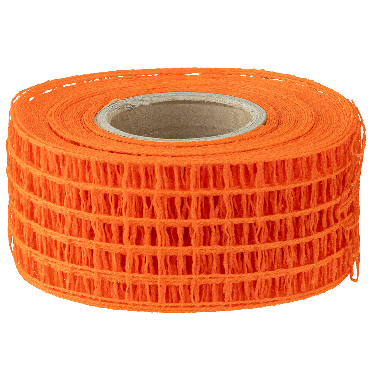 De oranje gaasband wordt aangeboden als een kleine rol van ongeveer 10 meter lang. De band zelf is ongeveer 4,5 centimeter breed.