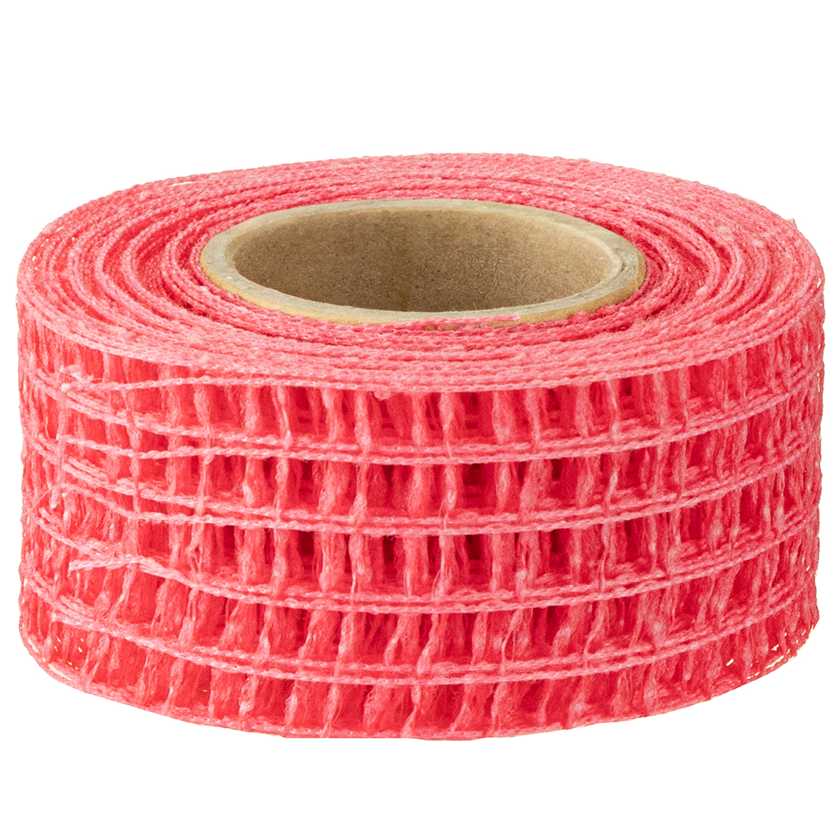 Het roze gaas is tot een rol gewikkeld en heeft een lengte van ongeveer 10 meter, de breedte is ongeveer 4,5 centimeter.