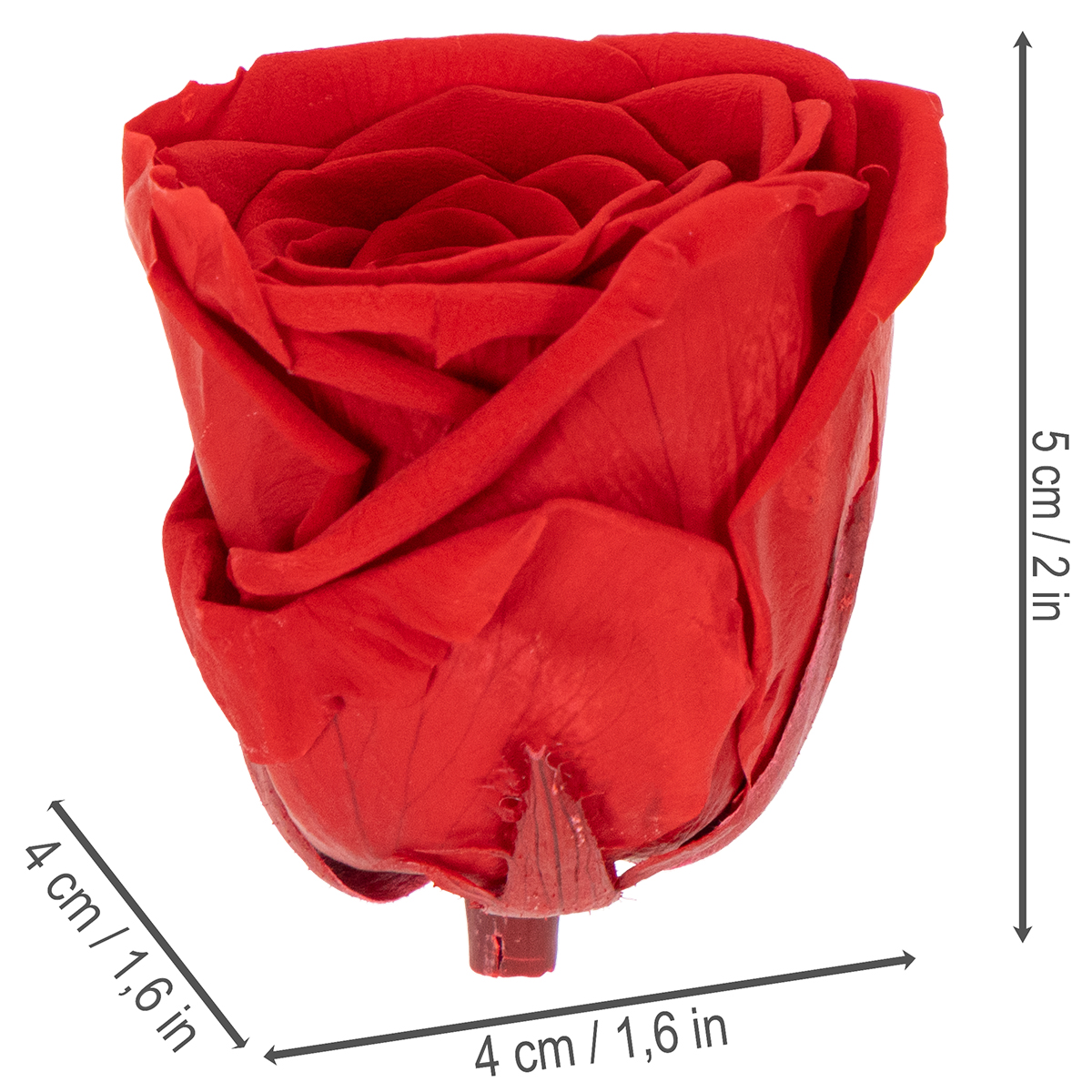 Onze geconserveerde rozen imponeren met hun schitterende rode kleur en hoogwaardige afwerking. Elke roos wordt zorgvuldig geselecteerd en geconserveerd met behulp van een speciaal proces. Dit garandeert dat de natuurlijke textuur en uitstraling van de bloem behouden blijven – alsof ze net geplukt is. Met een hoogte van circa 5 cm en een diameter van 4 cm hebben de rozen de perfecte proporties om een vleugje elegantie toe te voegen aan elke decoratie.