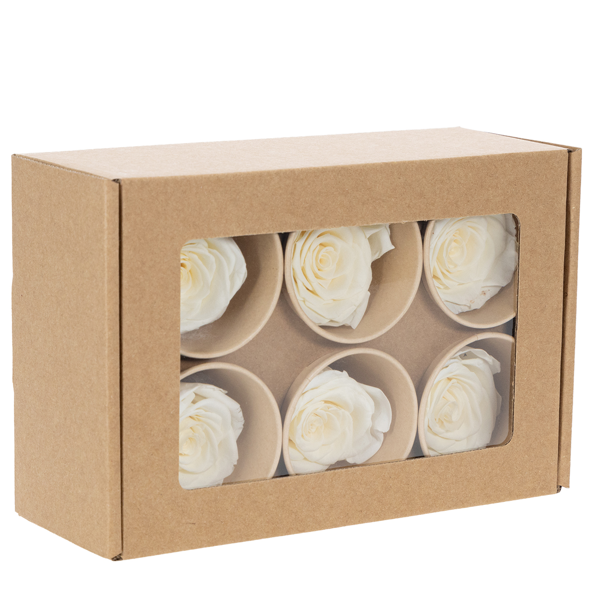 Stel je een bruiloft voor waar deze prachtige, lang houdbare rozen als tafeldecoratie dienen. Ze verwelken niet en hoeven niet opnieuw gestikt te worden. Alles blijft perfect tot de laatste dans. Maar deze witte rozen creëren ook een bijzondere sfeer in huis. Schik de zes rozen in een mooie vaas of combineer ze met gedroogde bloemen voor een unieke presentatie. Voor een natuurlijker effect kun je de rozen in glazen vazen zetten. Ze zien er simpelweg prachtig uit in combinatie met kerstverlichting voor een subtiel vleugje glamour.