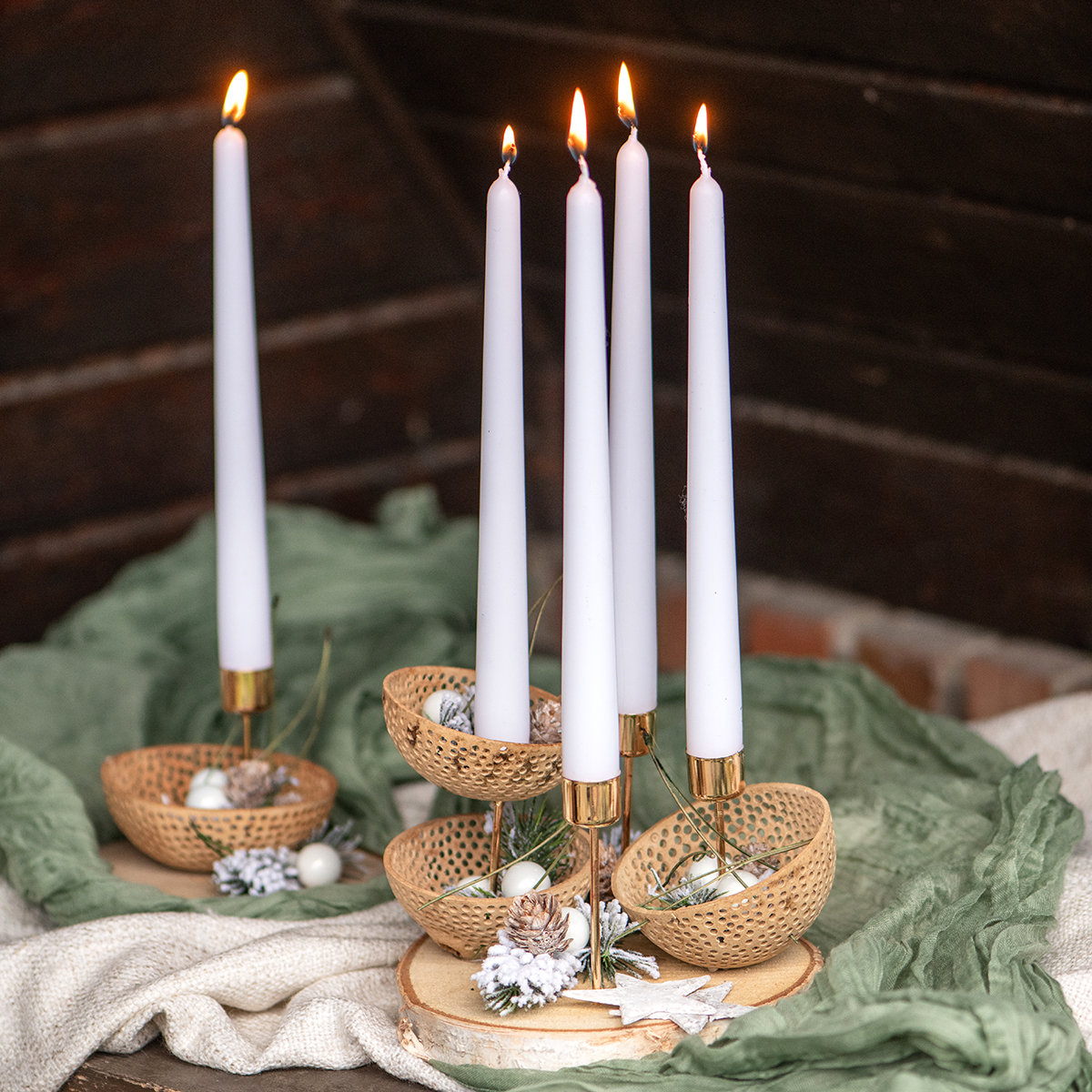 Materialen: Natuurlijke materialen zoals kegels, hout, schors, mos, twijgen, bladeren, gedroogde bloemen, zeewier en kokosvezels.