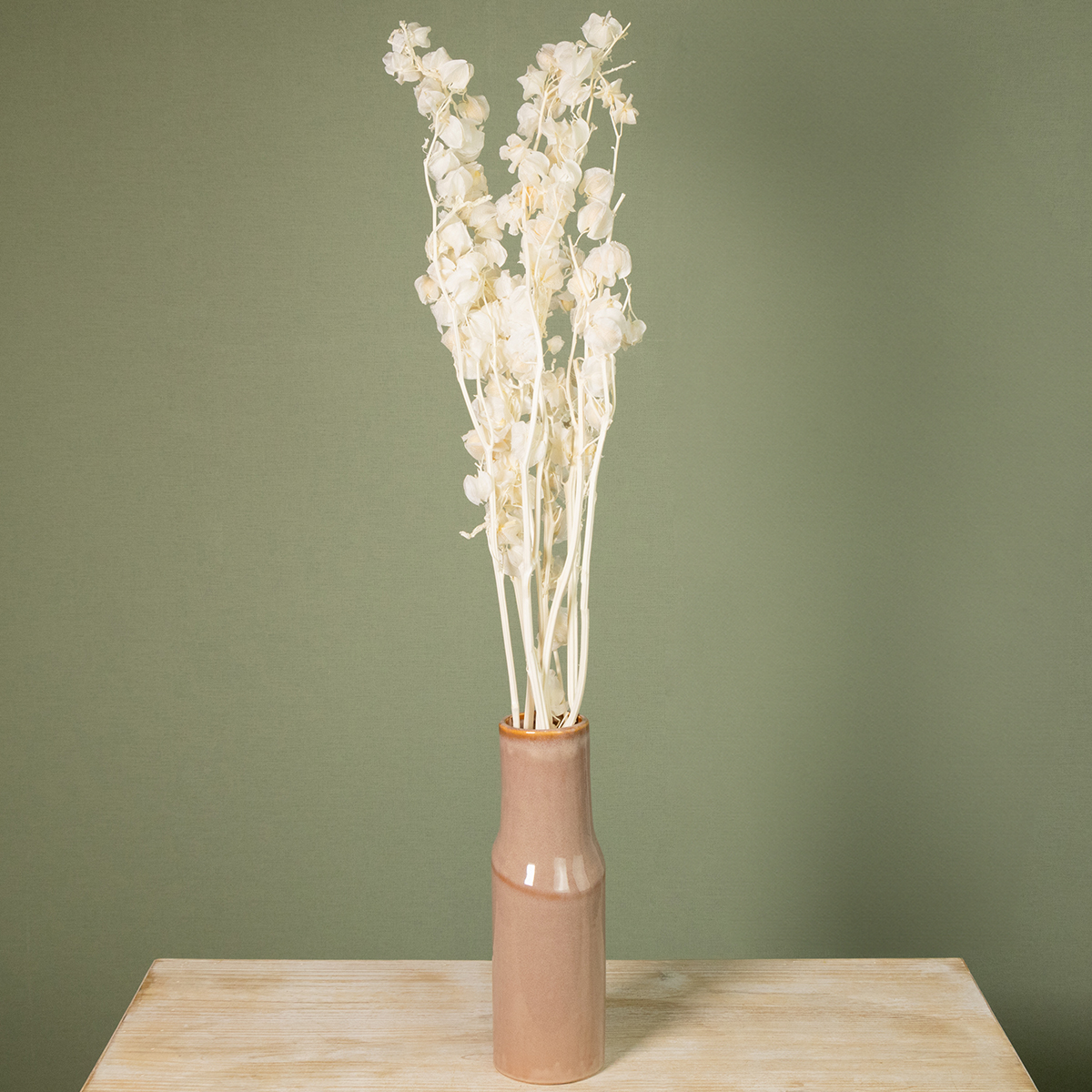 Onze gedroogde, gebleekte lampionbloemen bestaan uit 75-80 cm lange, zorgvuldig geconserveerde stelen, versierd met de karakteristieke, kleine, lampionachtige physalis. Dankzij hun eenvoudige witte kleur zijn deze droogbloemen perfect te integreren in een breed scala aan interieurconcepten. Ze geven elke kamer een delicate elegantie zonder opdringerig te zijn – een hoogtepunt dat eenvoudige schoonheid combineert met een connectie met de natuur.