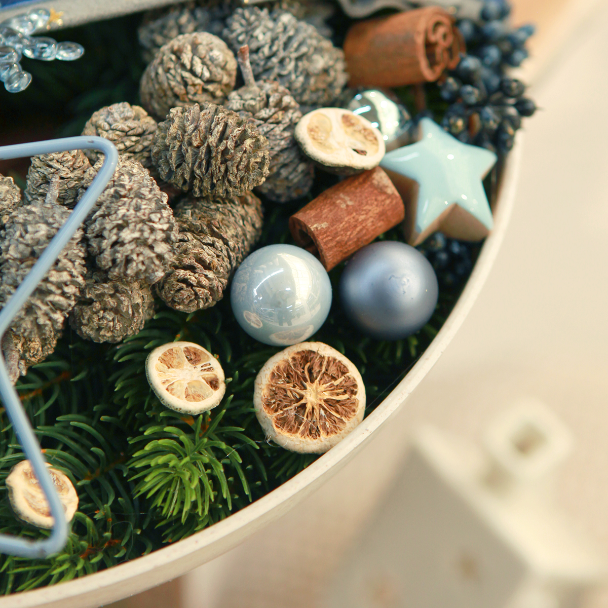 Materialen: Natuurlijke materialen zoals kegels, hout, schors, mos, twijgen, bladeren, gedroogde bloemen, zeewier en kokosvezels.