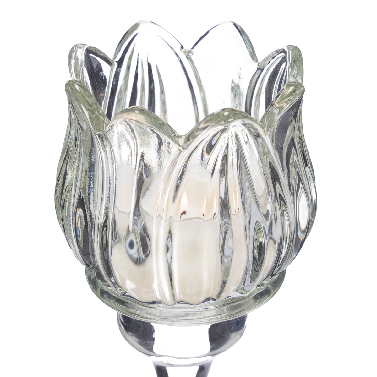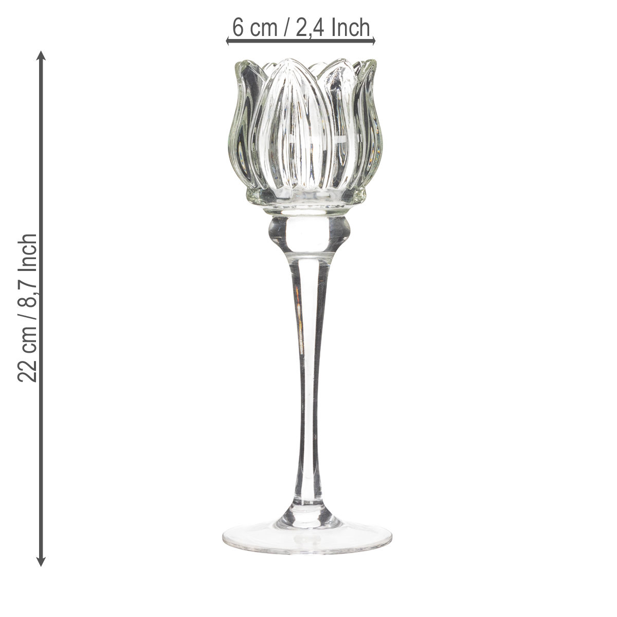 Glazen kaarsenhouder in de vorm van een bloem, voor elegante tafeldecoratie, evenementen en bruiloften, 22 cm