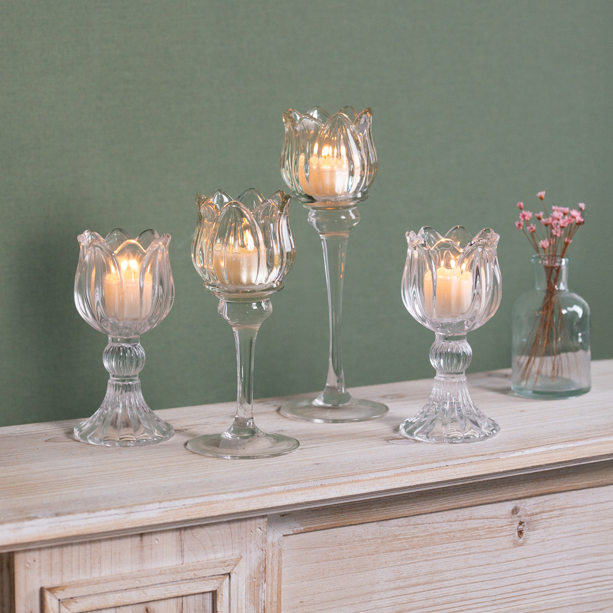 Glazen kaarsenhouder in de vorm van een bloem: stijlvolle details voor elke gelegenheid.