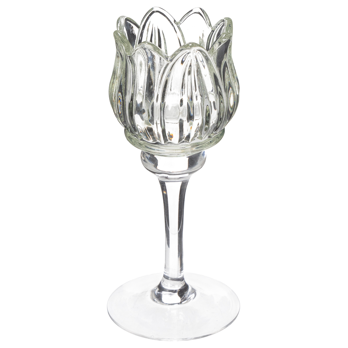 Glazen theelichthouder in decoratieve bloemvorm voor een stijlvolle sfeer, 17 cm