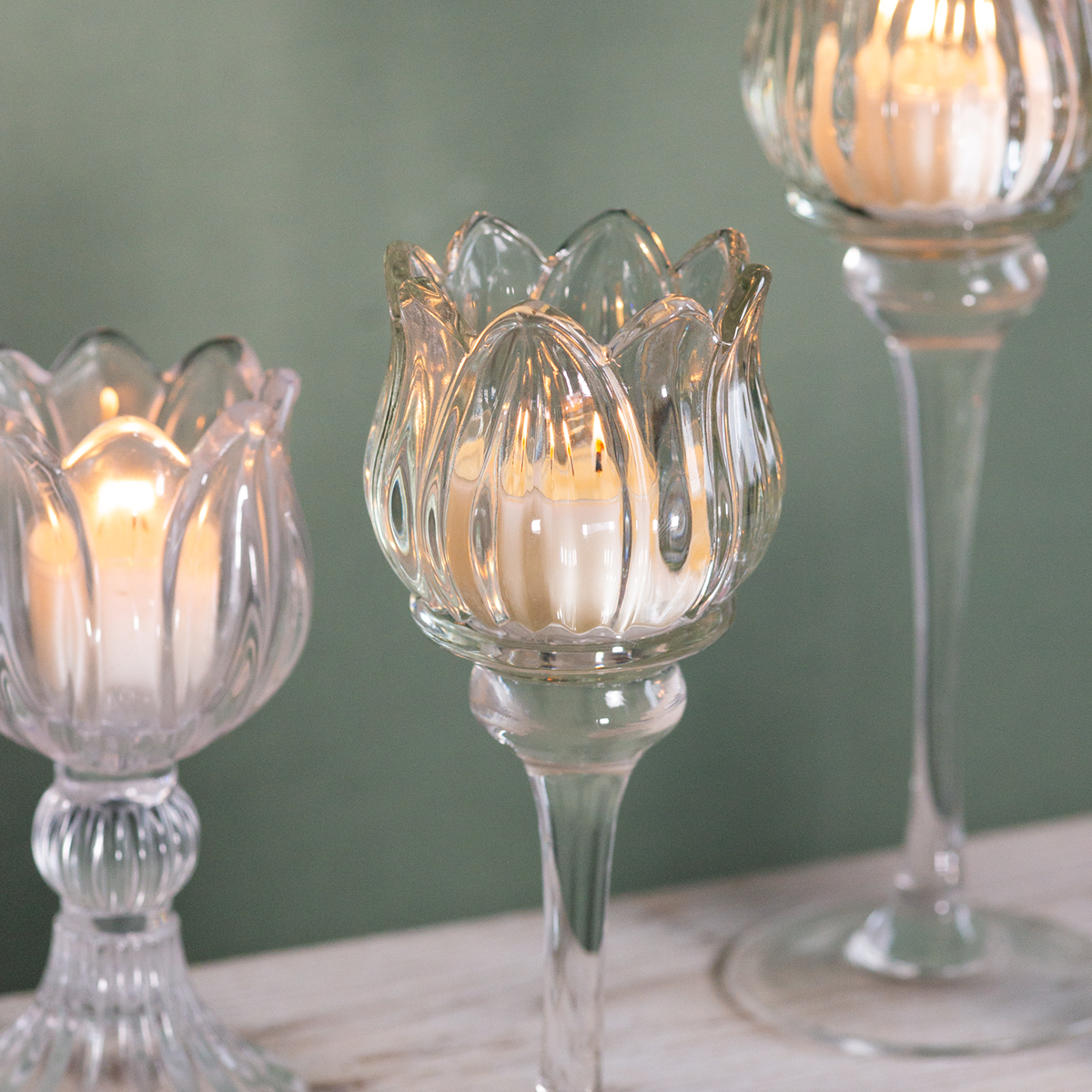 Hoogwaardige glazen theelichthouder in de vorm van een bloem – een elegant woonaccessoire.