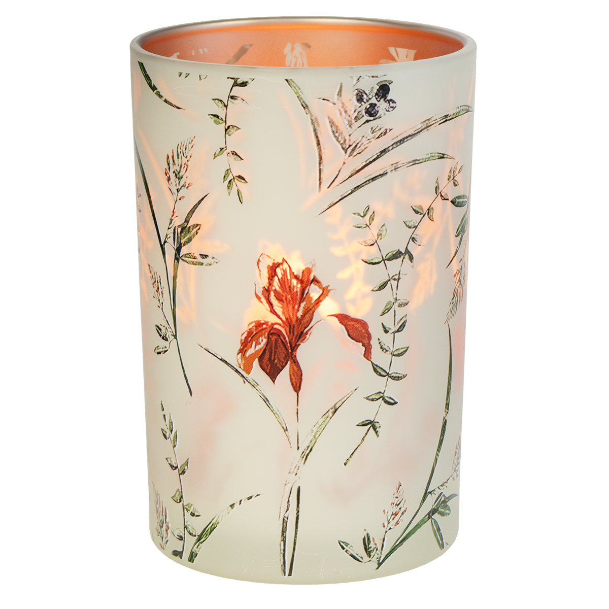 Glazen theelichthouder met bloemenmotief: stijlvolle momenten van welzijn voor in huis.