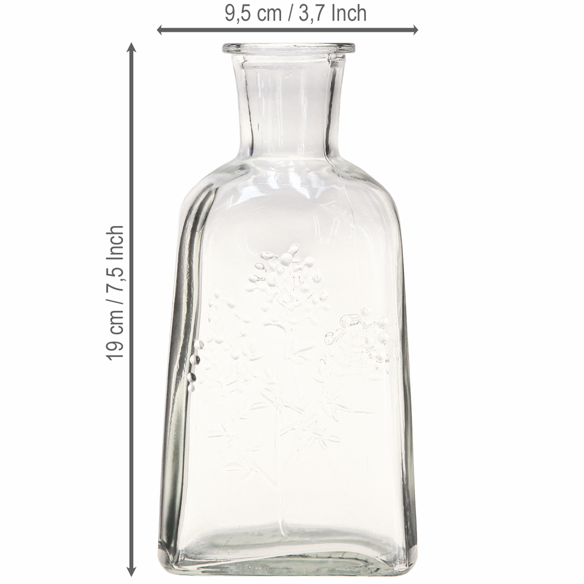 Glazen vaas flesvaas met motief vaas glas helder H19cm 2 stuks