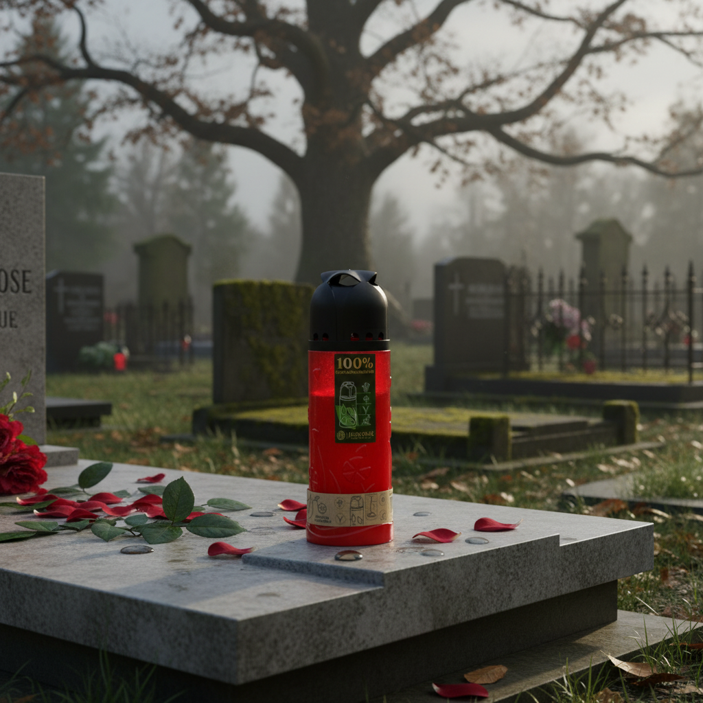 De grafkaars in het rood is een waardige manier om uw dierbaren te herdenken. Een warm licht dat stilte en toewijding uitstraalt en een bijzondere eer geeft aan de plaats van laatste rust. Ervaar contemplatie met deze hoogwaardige herdenkingskaars die traditie combineert met duurzame verantwoordelijkheid.