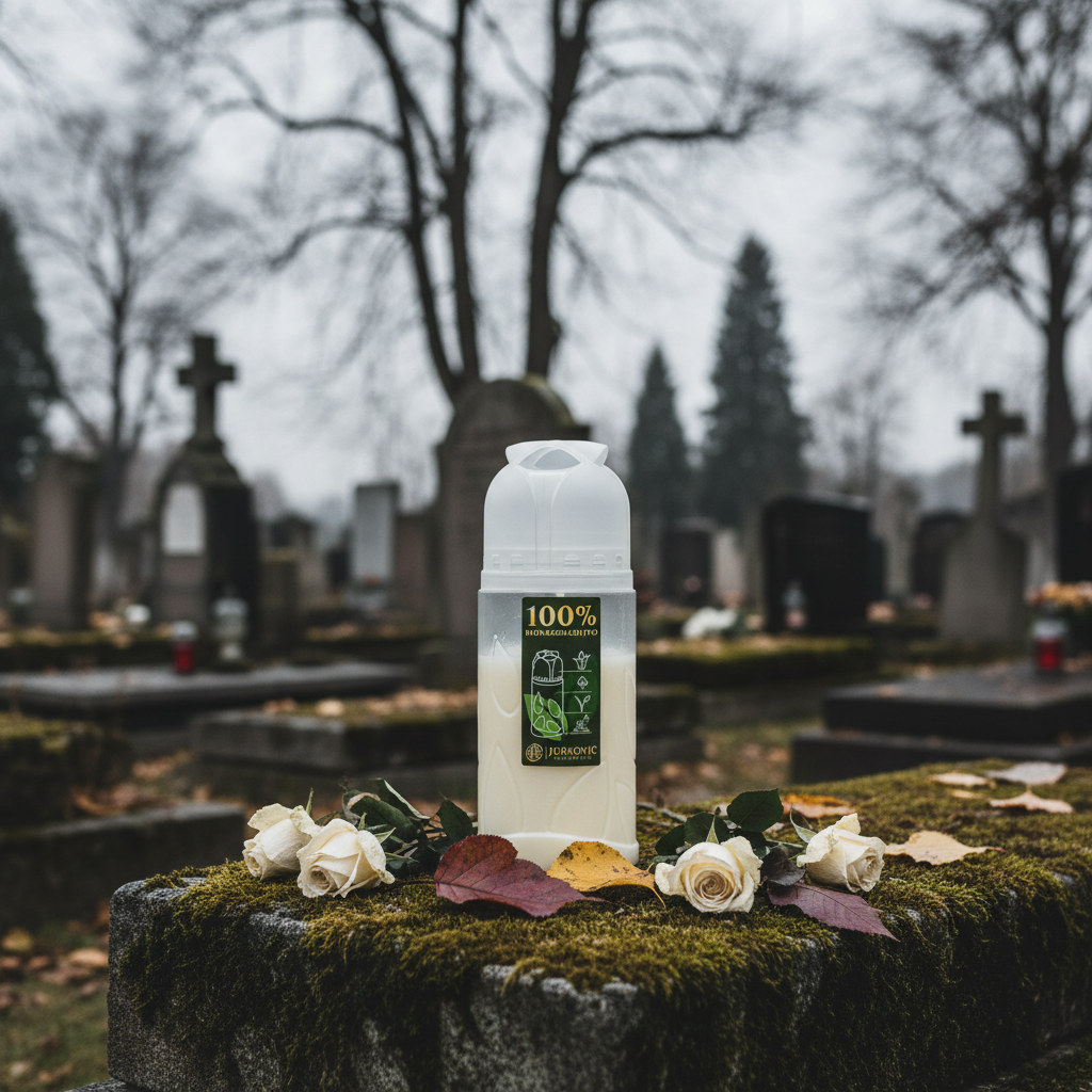 De grafkaars van Ecoterra combineert traditionele waarden met milieuvriendelijk bewustzijn. Deze kaars is gemaakt van hoogwaardige was uit plantaardige olie en brandt niet alleen schoon, maar spaart ook hulpbronnen. De katoenen lont zorgt voor een gelijkmatige verbranding zonder roet gedurende een periode van maximaal vier dagen.