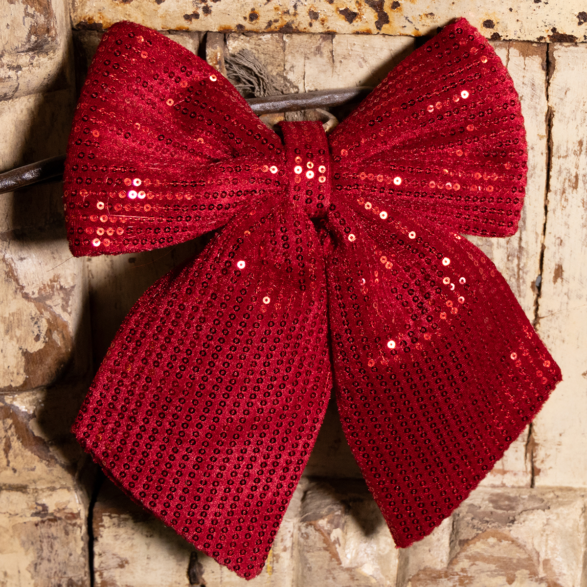 Grote fluwelen strik in donkerrood – elegantie en pailletten met een feestelijke glans