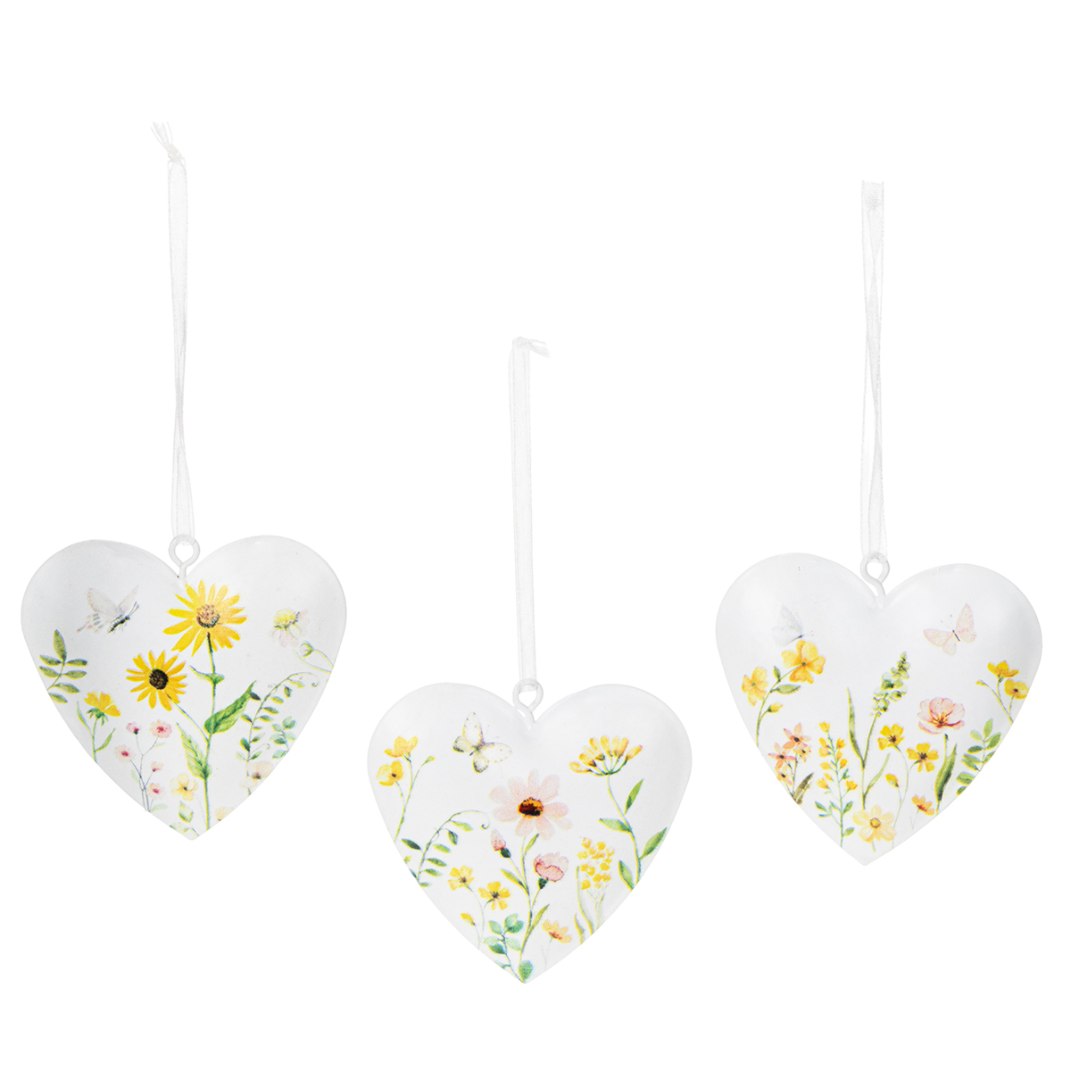 Hartvormige hangers met bloemenmotieven als wanddecoratie, 7 cm, 6 stuks