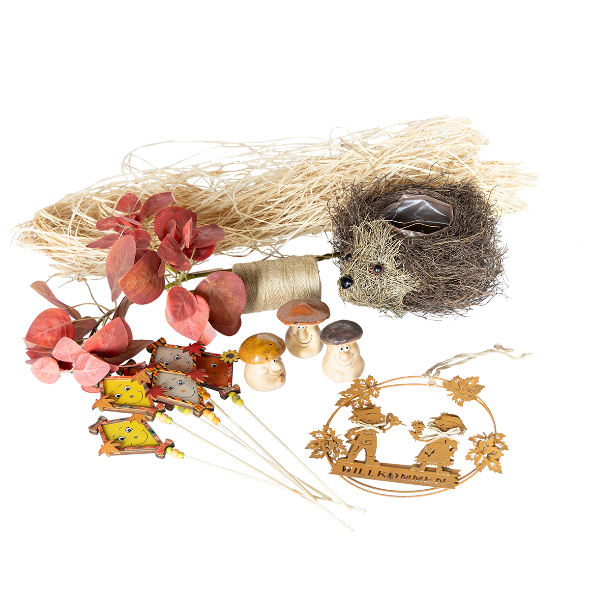 Productnaam: Herfstdecoratieset egel paddenstoelen draak – koop decoratiebox goedkoop