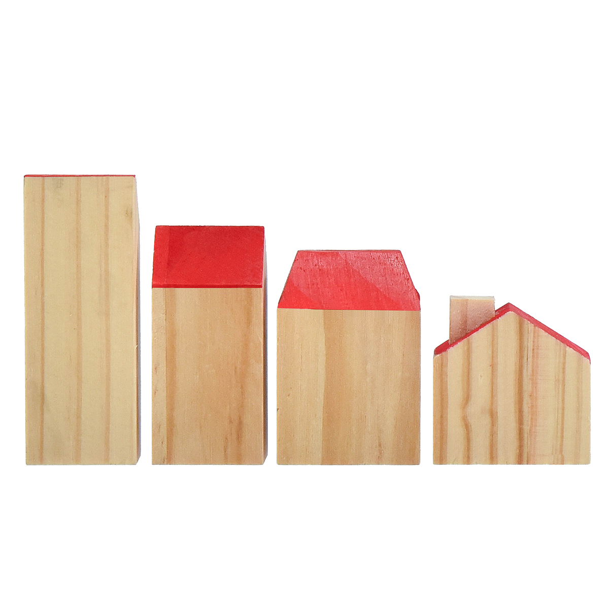 Houten huis decoratieve huizen hout naturel rood 4 st