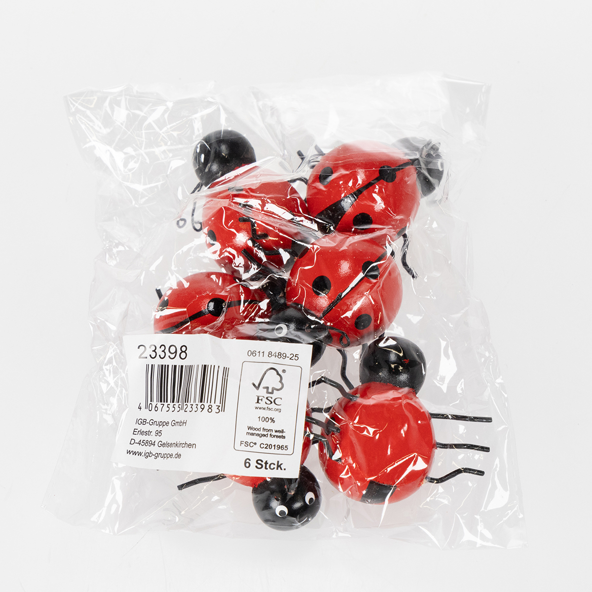 - Set van 6 lieveheersbeestjes, elk 5 cm hoog.