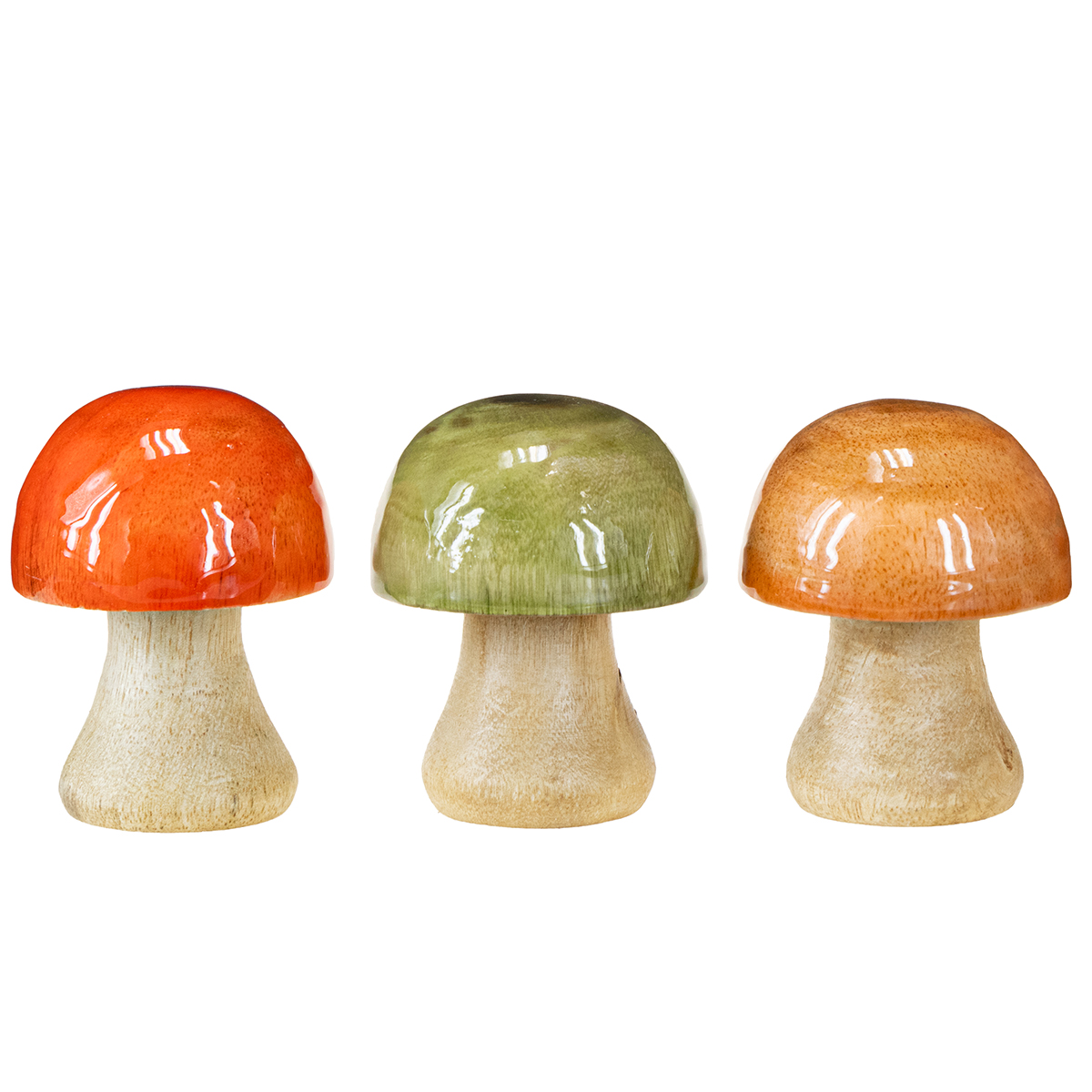 Heb je je ooit afgevraagd hoe je je woonkamer of eettafel die heerlijke herfstcharme kunt geven? Soms is een kleine, liefdevol uitgekozen decoratie al voldoende om een sfeer vol warmte en gezelligheid te creëren. Onze houten paddenstoelen in groen, rood en oranje brengen precies dat: een puur herfstgevoel! Met hun handzame formaat van 6,5 cm en hun robuuste houten constructie passen de paddenstoelen niet alleen perfect in elk arrangement, maar stralen ze ook een vleugje rustieke landhuisstijl uit. Of het nu gaat om je tafeldecoratie, op de vensterbank of in een herfstkrans – deze houten figuren zijn zo veelzijdig dat ze gegarandeerd de blikvanger van je interieur worden.
