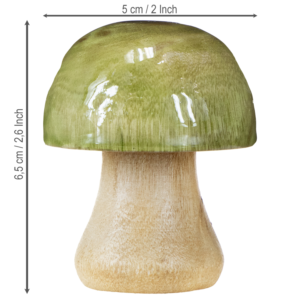 Met een hoogte van 6,5 cm zijn ze klein genoeg om gemakkelijk in arrangementen te passen, maar groot genoeg om een echte blikvanger te zijn. De kleine details, zoals de unieke houtnerf, komen perfect tot hun recht op een herfsttafel. Zet ze in een schaal met herfstbladeren, combineer ze met lampjes of zet ze gewoon los op houten dienbladen of planken. Wie van herfstdecoratie houdt, zal ook enthousiast zijn over de veelzijdigheid van paddenstoelen: of het nu gaat om familiefeesten, verjaardagen, herfstfeesten of gewoon als gezellige tafeldecoratie voor dagelijks gebruik – deze paddenstoelen zijn overal inzetbaar.