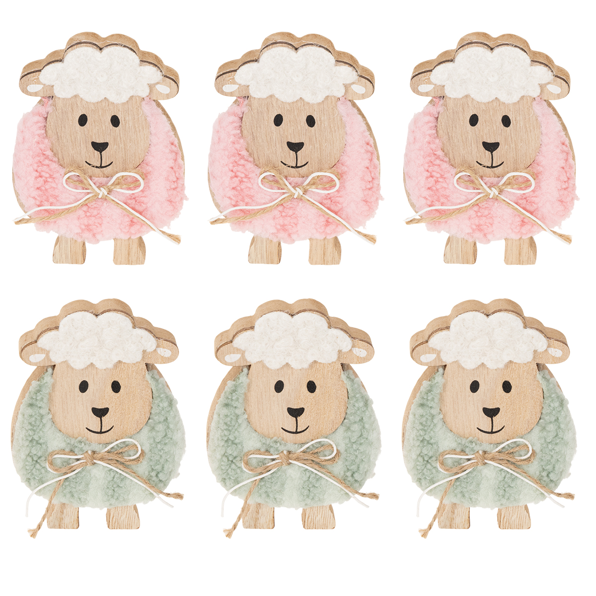 Houten schaapjes als decoratie, schattige decoratieve figuurtjes voor de lente en Pasen, tafeldecoratie, 11 cm, 6 stuks