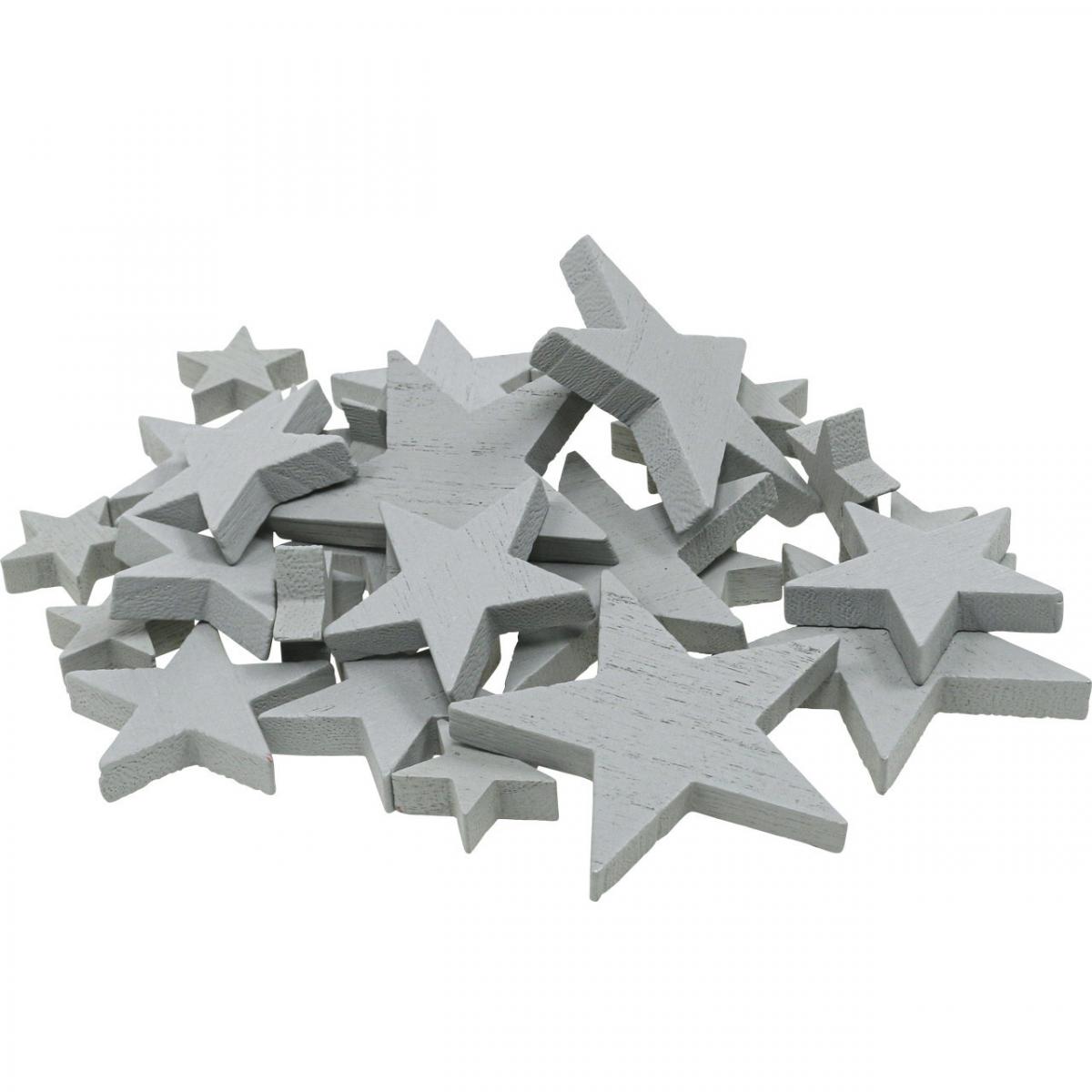 Houten sterrendecoratie strooidecoratie Kerstmis grijs 3/5/7cm 29 st