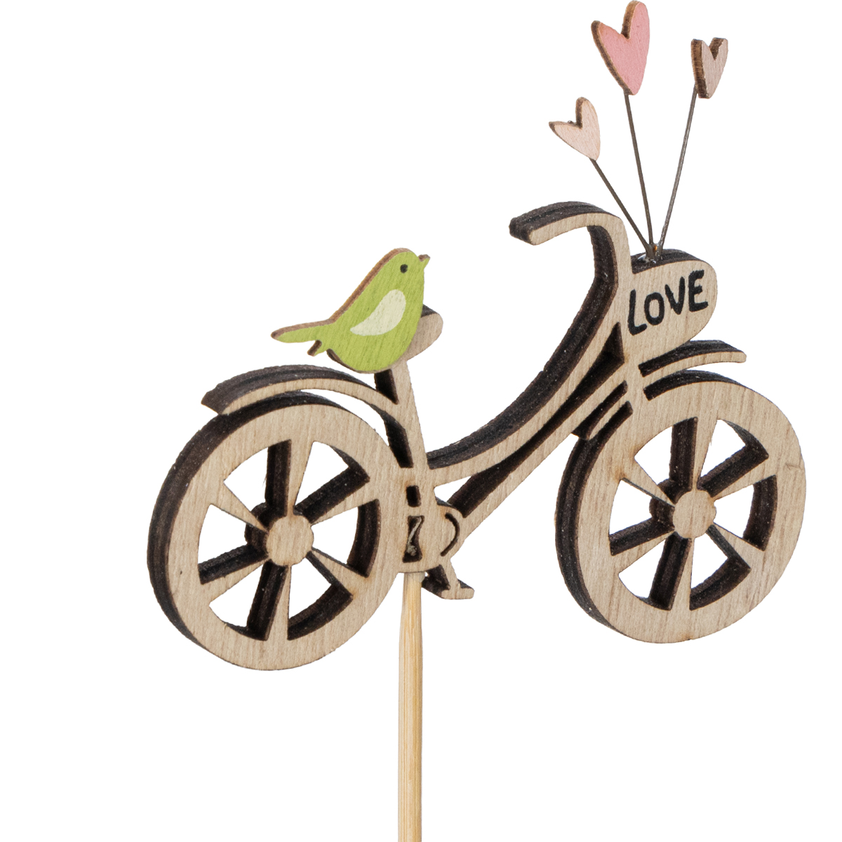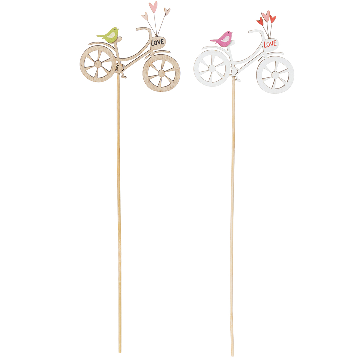 Zoekt u een bijzondere decoratie om de lente in huis te halen? Deze houten stokjes met fietsmotief zijn perfect om een romantische sfeer te creëren in uw woonkamer, op uw balkon of terras. Met delicate details zoals een naturelkleurige houten fiets, kleine hartjes en schattige vogeltjes, trekt deze decoratie gegarandeerd de aandacht. Wat dacht u van een creatieve schikking in een fris lenteboeket of als blikvanger in een plantenbak? De natuurlijke uitstraling van de stokjes past perfect bij een landelijke inrichting of moderne bloemstukken.