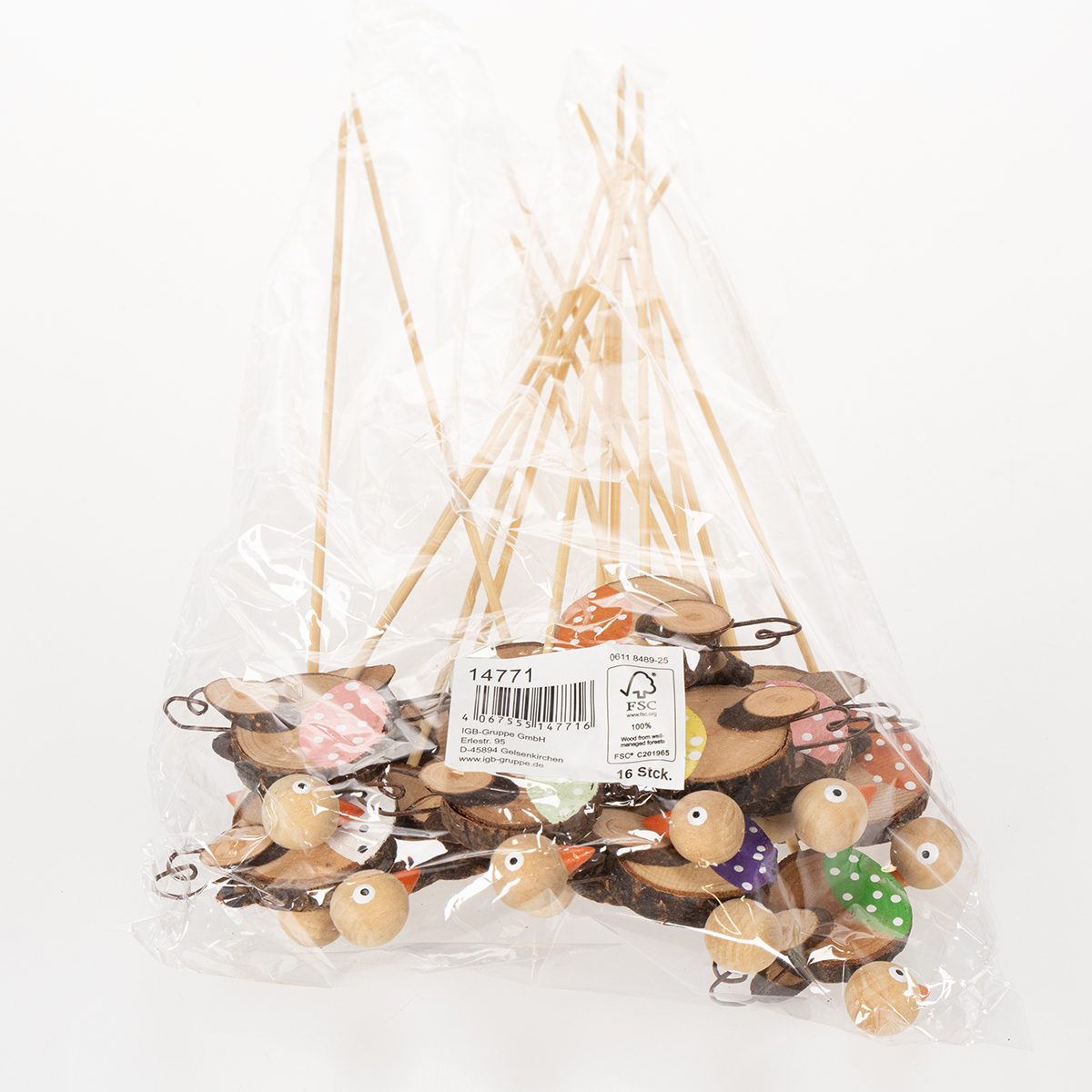Productnaam: Houten tuinstekers in de vorm van vogels voor creatieve decoratie in de lente en zomer, 33 cm, 16 stuks
