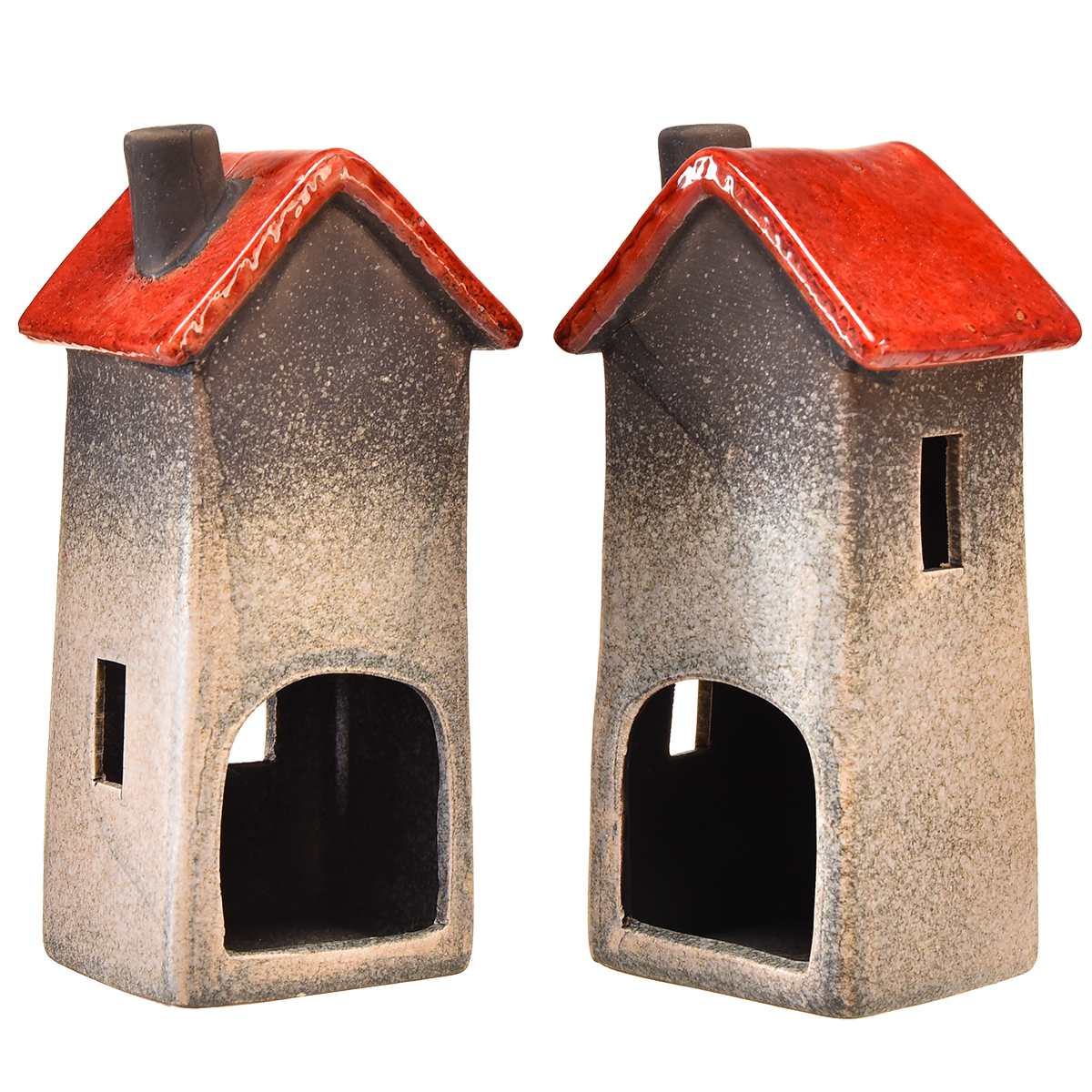 Huislantaarn van keramiek met rood dak en hartvenster - 17,5 cm 2 st