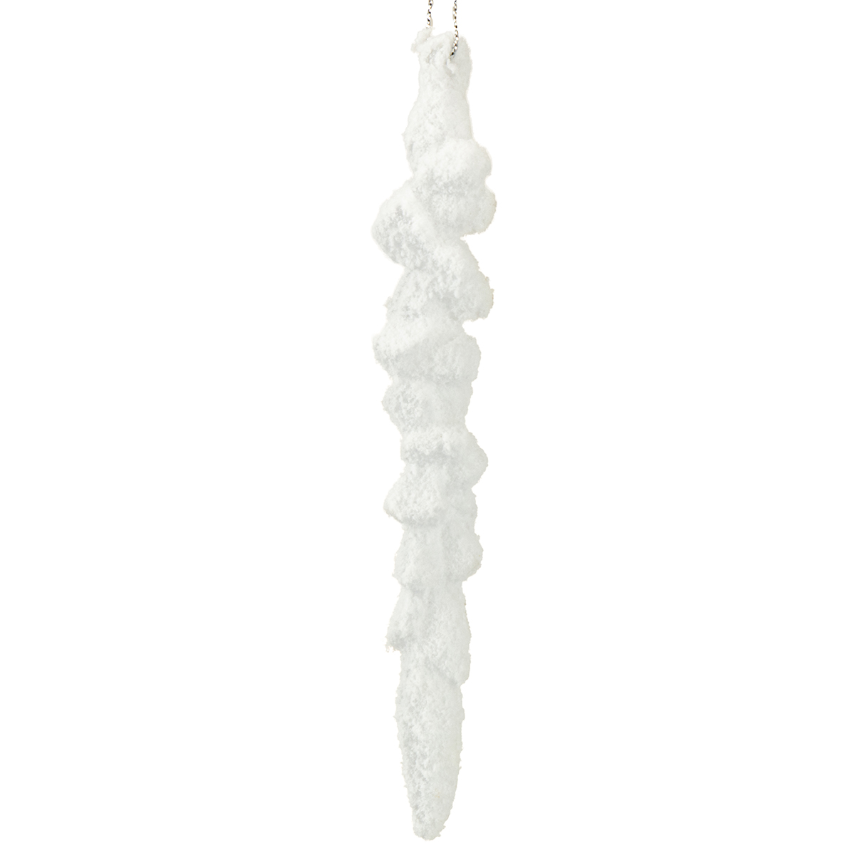 Besneeuwde kerstboomversieringen in de vorm van ijspegels – witte wintermagie voor de woonkamer