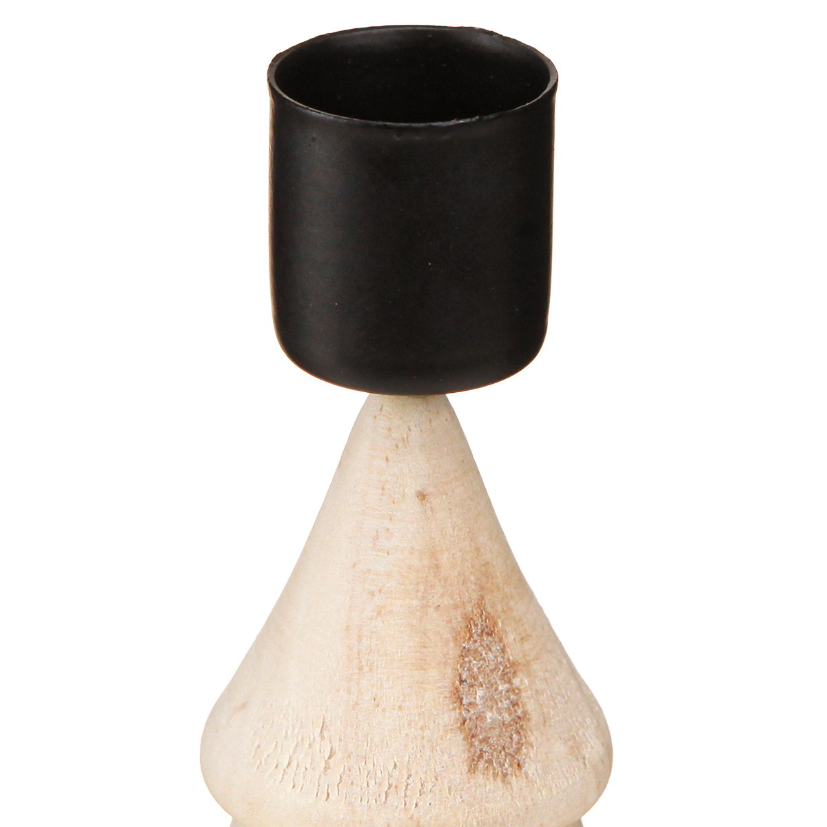 De kaarsenhouder in de vorm van een kerstboom, gemaakt van natuurlijk hout, brengt een vleugje natuur rechtstreeks in huis. Deze decoratieve kaarsenhouders zijn ideaal om een gezellige sfeer te creëren tijdens de kerstperiode. Met een hoogte van ongeveer 13 cm zijn ze perfect als feestelijke tafeldecoratie of als een gezellig hoogtepunt op de schouw. Het ontwerp combineert minimalistische elegantie met rustieke charme dankzij het ongeschilderde, FSC-gecertificeerde hout. De zwarte metalen kaarsenhouder boven op de boom zorgt voor een bijzonder accent en voegt een moderne touch toe. Deze kaarsenhouders in klassieke Scandinavische stijl passen perfect bij alle kerstversieringen en zijn een prachtig cadeau-idee voor uw dierbaren. Laat de harmonie van hout en metaal bijdragen aan een warme, uitnodigende sfeer en geniet van de contemplatieve tijd met familie en vrienden.
