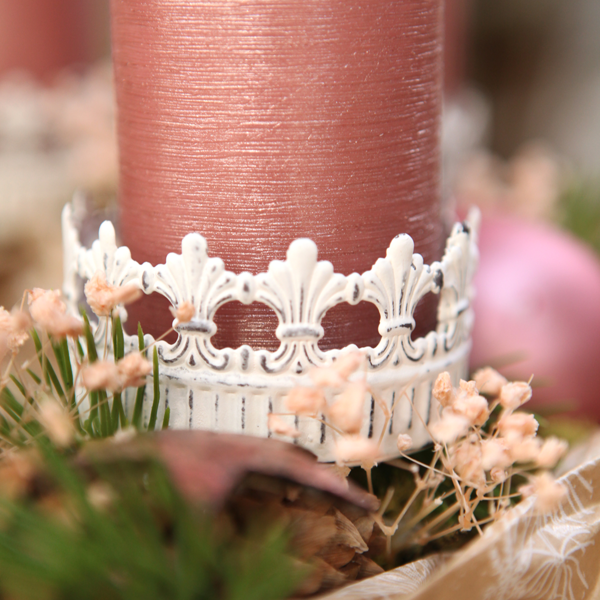 Plaats de kaarsenhouder eenvoudig in een bloemstuk met pastelkleurige bloemen en kleine takjes met kantversieringen en creëer zo een uniek en nostalgisch sieraad dat je in je gezellige huis kunt plaatsen, bijvoorbeeld op een dressoir of in het midden van je eettafel. De houder is ook een perfecte keuze als romantisch huwelijkscadeau of staat prachtig op zichzelf met een dikkere, kleurrijke stompkaars.