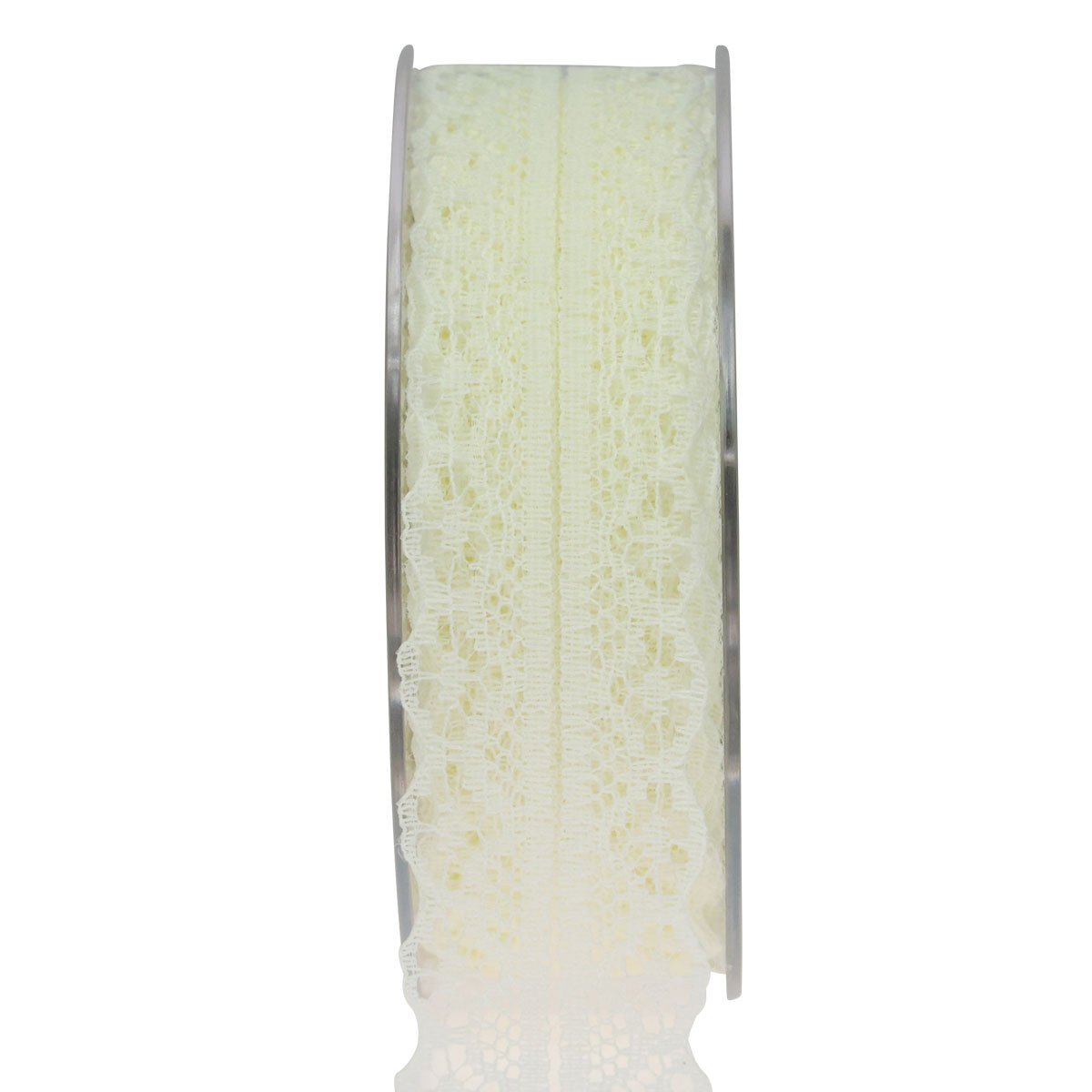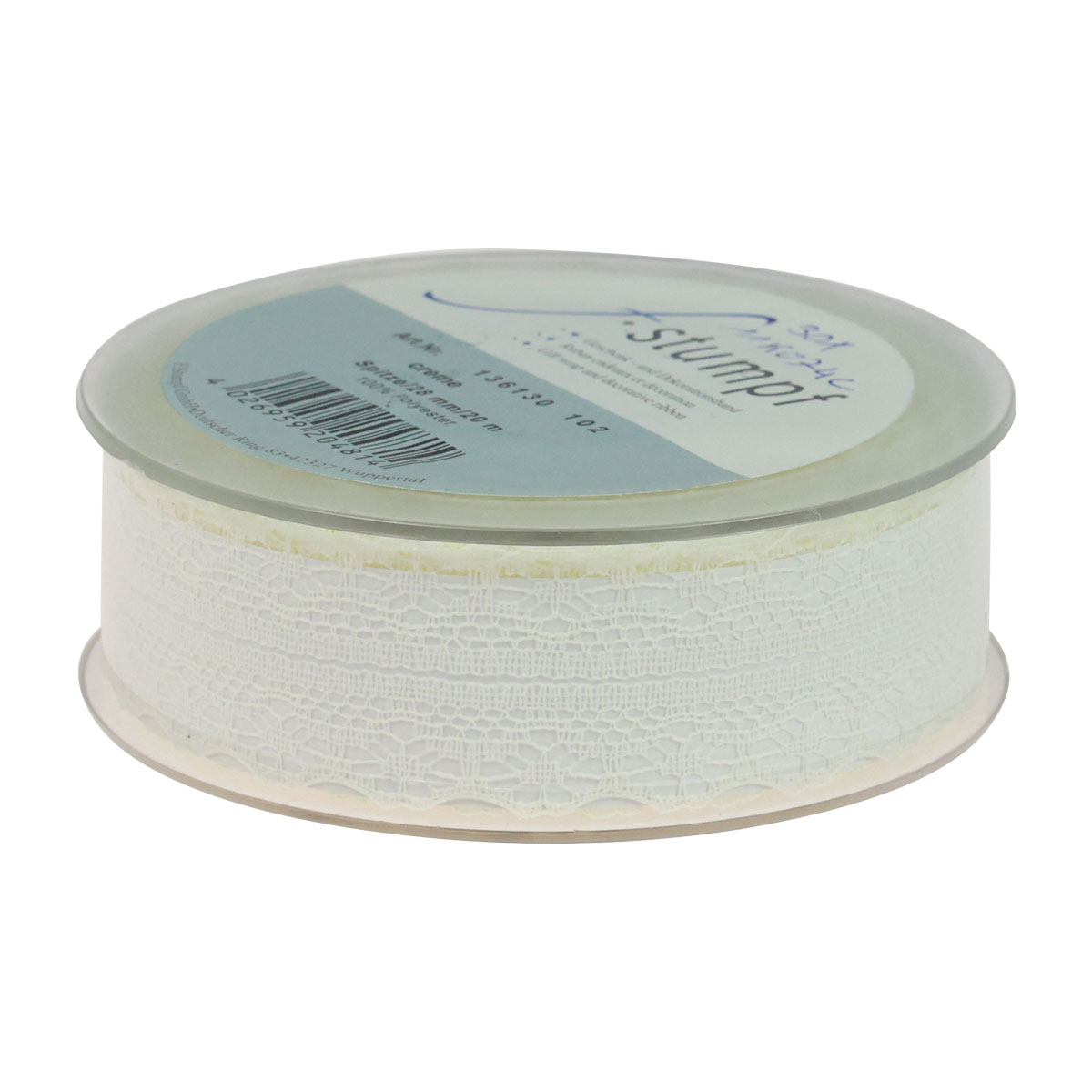 Het delicate kanten lint is ongeveer 28 millimeter breed en 20 meter lang. Het decoratieve lint wordt geleverd op een praktische kunststof spoel, zodat u het eenvoudig kunt meten en knippen.