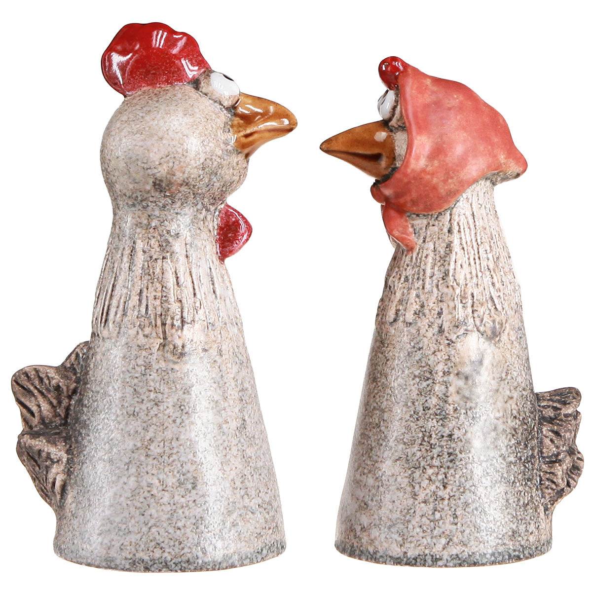 Paasdecoratie van keramiek: haan en kip in grappige landhuisstijl