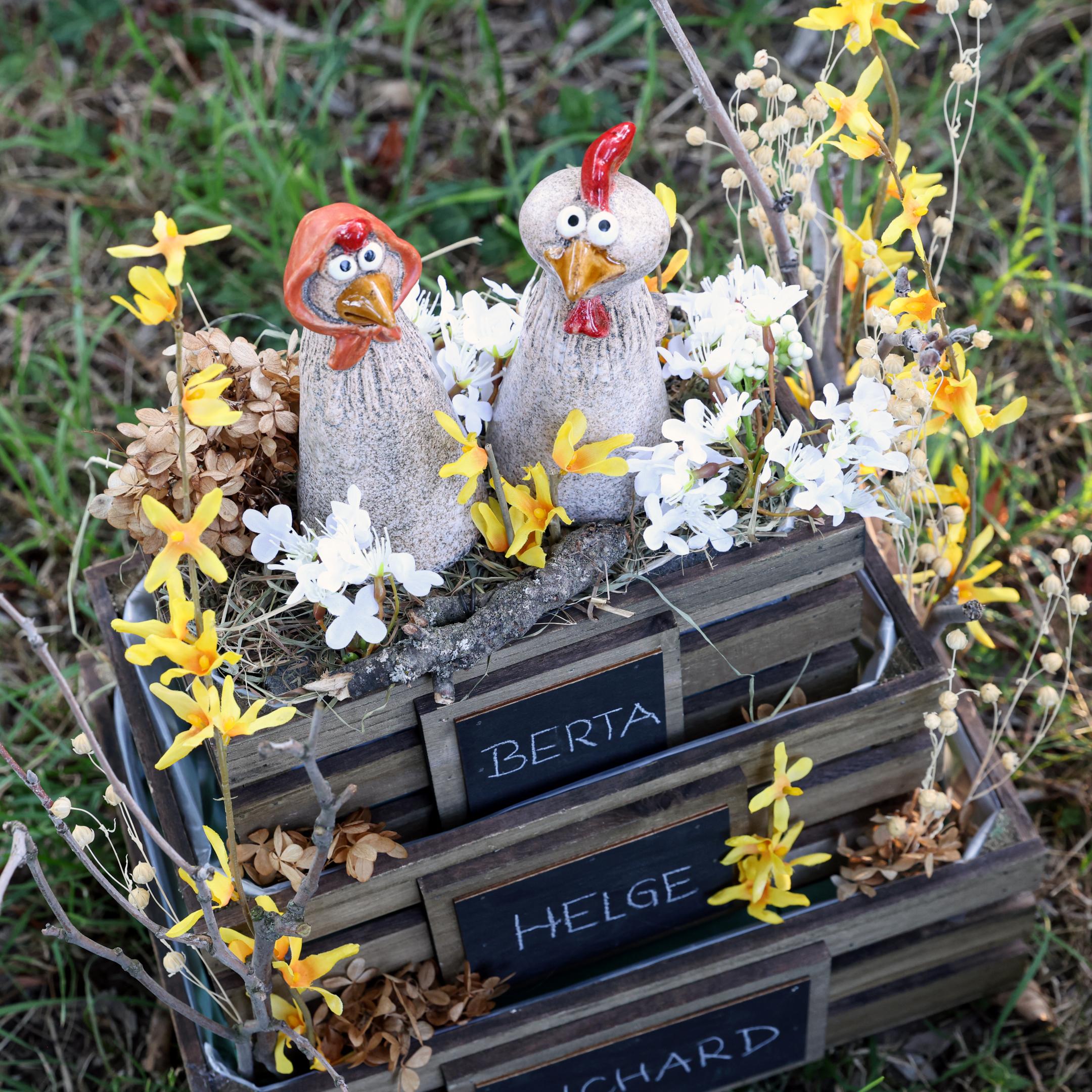 Onze keramische sierkippen zijn ideaal voor verschillende decoratieconcepten. Plaats ze op je vensterbank om de paassfeer binnen en buiten te verspreiden. Combineer de set met kleine kleurrijke eieren of bloemstukken gemaakt van kunstbloemen van Floristik24 om een harmonieus ensemble te creëren. Vooral op de paastafel in combinatie met ons keramiek konijntje uit dezelfde serie brengen ze geluk en leven in de woonkamer. Of verras uw gasten met deze charmante decoratie op het terras tijdens een paasbrunch. Voor een harmonieuze totaalindruk vindt u bij Floristik24 andere artikelen zoals vazen in natuurlijke tinten of tafelkleden in rustieke stijl, die de landelijke uitstraling onderstrepen.