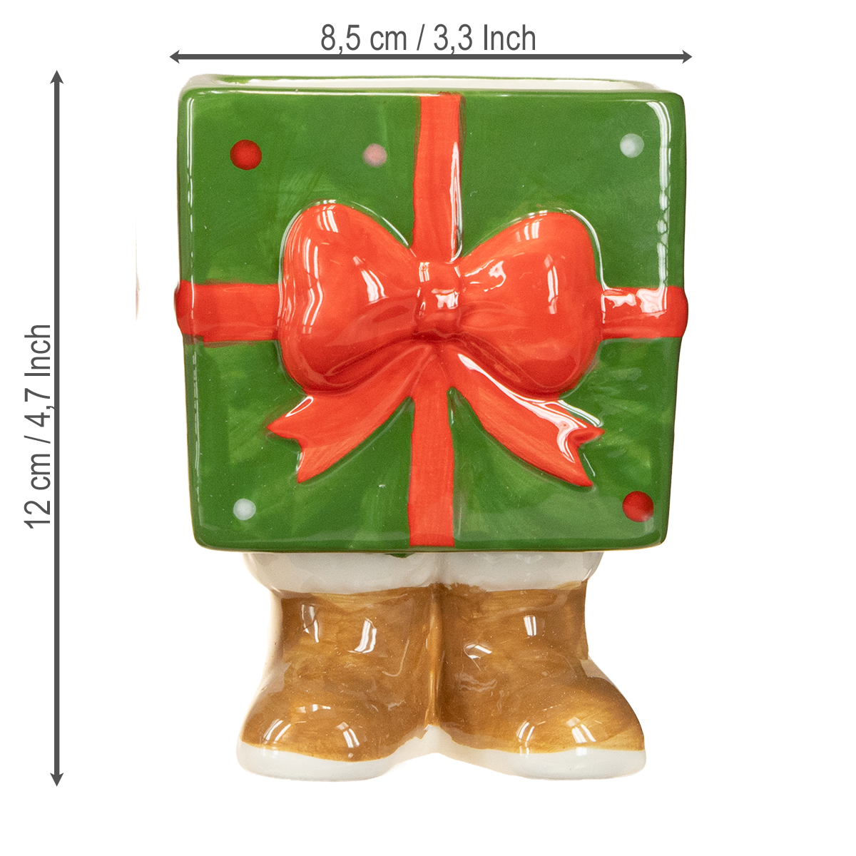 Originele kerstversiering met een eigen tintje – in dit geval met voetjes: laat je betoveren door deze keramische kerstplantenbak! Deze charmante geschenkverpakkingen met voetjes en een grote rode strik horen gewoon thuis op elke tafel tijdens de advent – of op de vensterbank. Of het nu in de woonkamer is, op tafel of als originele blikvanger op kantoor: deze kleine kunstwerkjes toveren een warme, feestelijke sfeer in elke setting tijdens de kerstperiode.