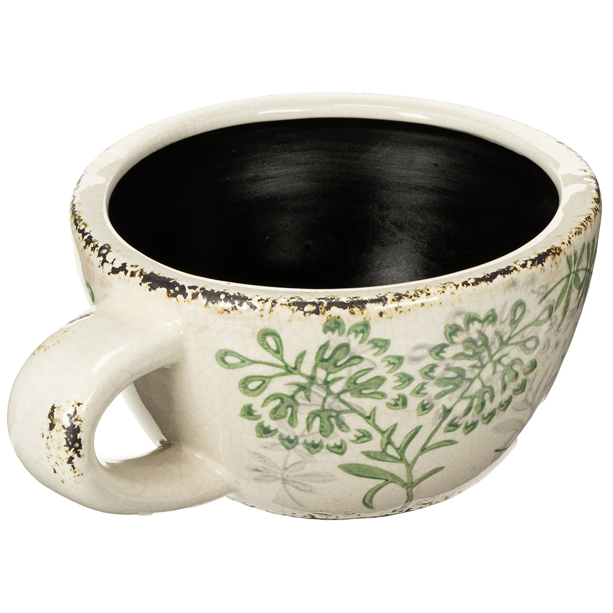 - Verfijnd bloemenpatroon in groen op witte keramiek