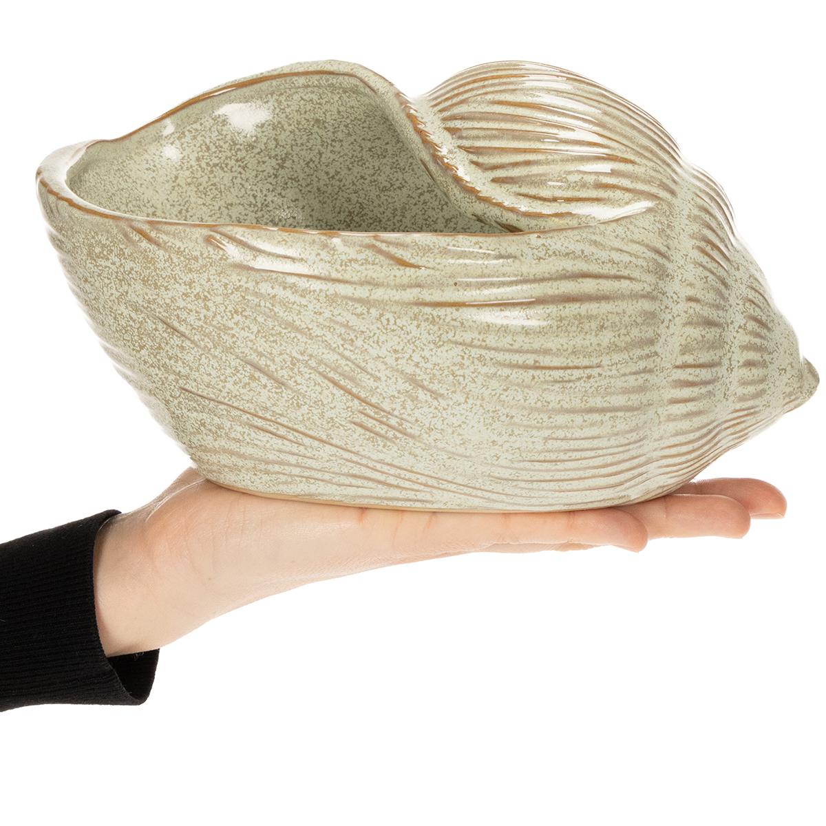 De unieke vorm van deze keramische schaal doet denken aan de zachte rondingen van een schelp. Het subtiele samenspel van vloeiend groen en delicate beige-bruine accenten geeft de schaal een tijdloze schoonheid. Het ontwerp roept herinneringen op aan lange strandwandelingen – het brengt een rustige, natuurlijke sfeer in elke ruimte. De schaal is perfect om sleutels op een aantrekkelijke manier in op te bergen in de hal, kleine sieraden op een kaptafel te presenteren, of zelfs als plantenpotje om een vleugje elegantie toe te voegen met kleine vetplantjes.