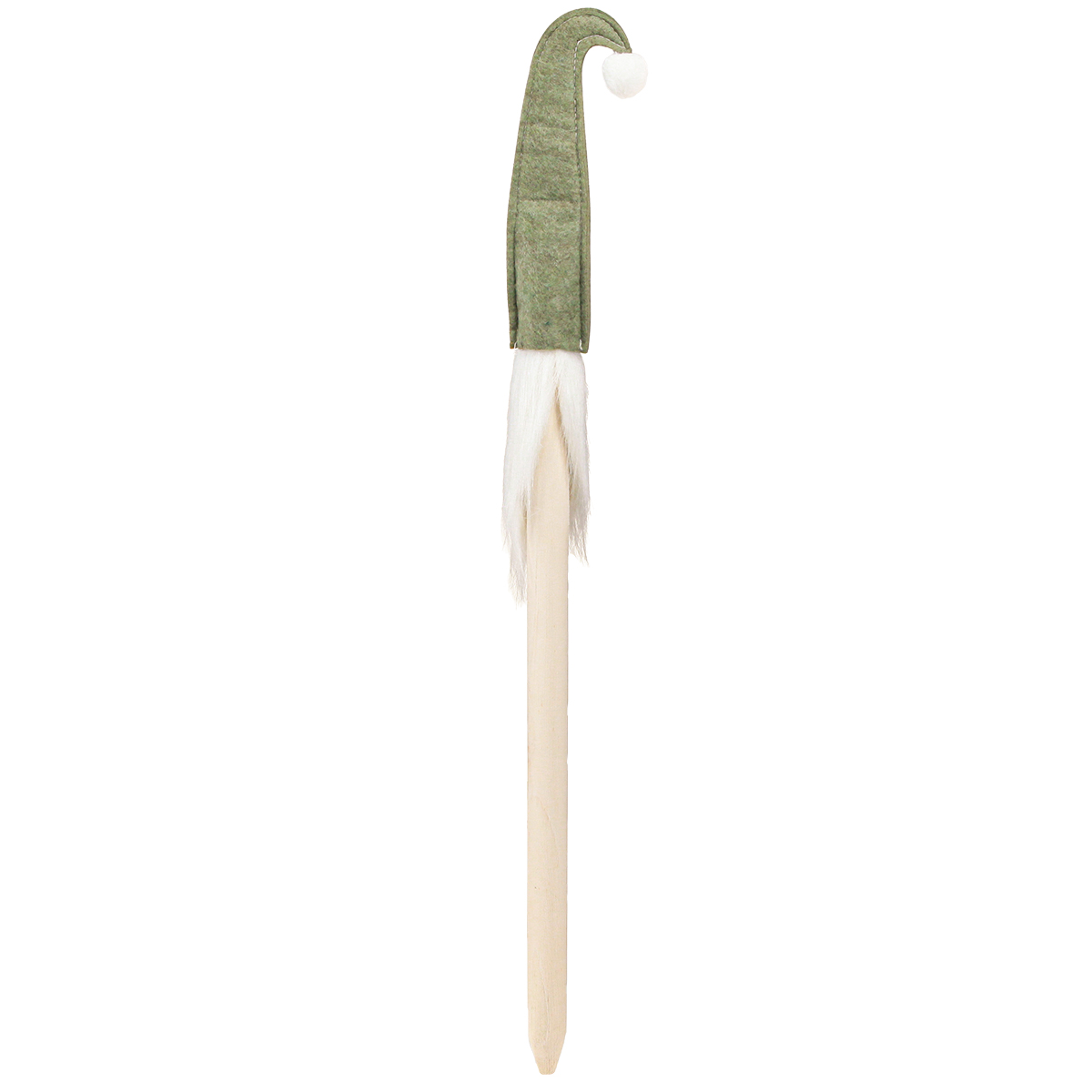 Geef je huis een feestelijke sfeer met deze Kerstman op een stokje. Deze figuren kunnen ook geïnterpreteerd worden als kerstkabouters en zijn niet alleen een echte blikvanger, maar ook enorm veelzijdig. Met hun klassieke Scandinavische design, met een groene vilten hoed en een prachtige, golvende baard, passen ze perfect in elke winterse decoratie. Het stevige, natuurlijke houten stokje is eenvoudig te bevestigen aan aarde, granulaat of ijzerdraad, dus je creativiteit kent geen grenzen. Of het nu gaat om een feestelijk arrangement, een versierde vensterbank of een originele kersttafeldecoratie, deze kabouterfiguren creëren overal een gezellige en uitnodigende sfeer.