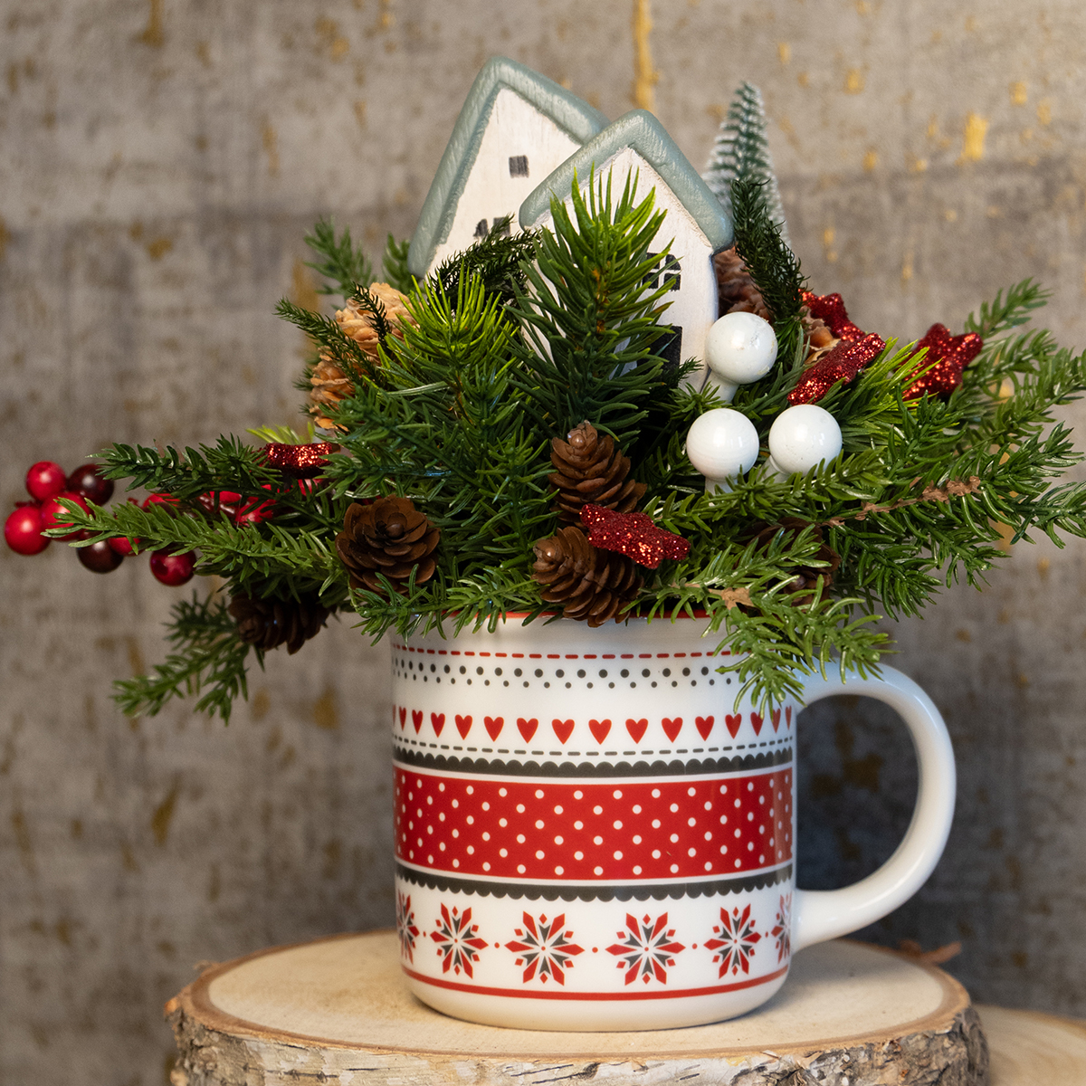 - DIY decoratie: Vul de beker met dennentakken en kaneelstokjes