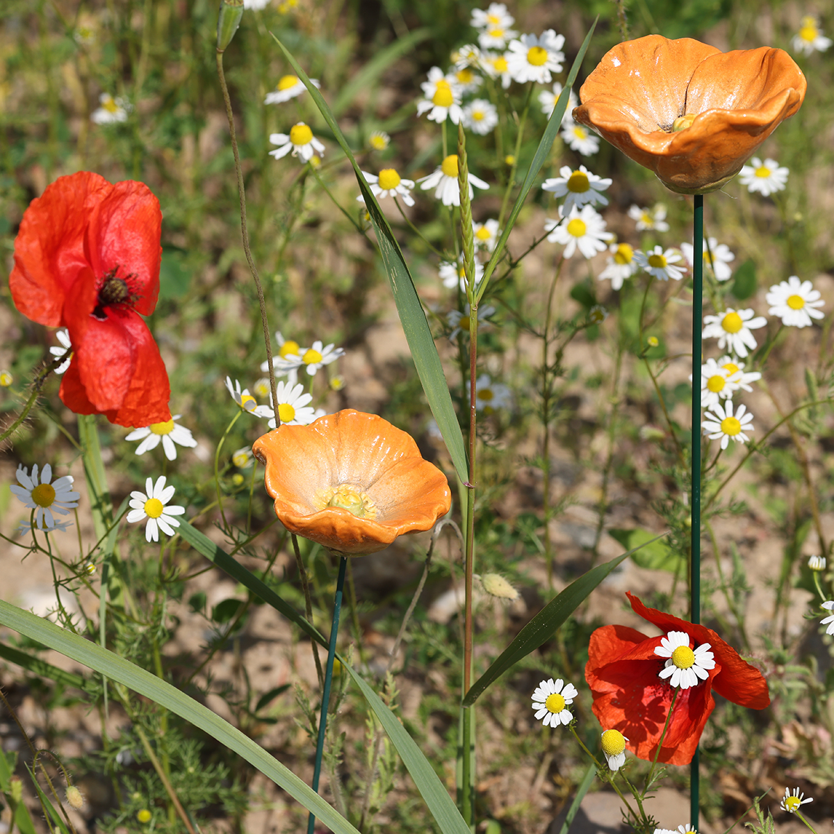 Onze klaproos-tuinstekers combineren een aantrekkelijk ontwerp met superieure kwaliteit. Gemaakt van zorgvuldig afgewerkt keramiek, imponeren ze met hun hoogwaardige uitstraling en verfijnde details. De warme oranje en witte tinten van de bloemblaadjes zorgen voor een levendig effect en fleuren elke tuin op. Dankzij hun handgemaakte look stralen de stekers een artistieke, natuurlijke charme uit die perfect past in een mediterrane of landelijke tuin. Combineer deze bloemen met groene planten of neutrale bloempotten – ze gaan harmonieus op in de omgeving en vormen tegelijkertijd een opvallend element.