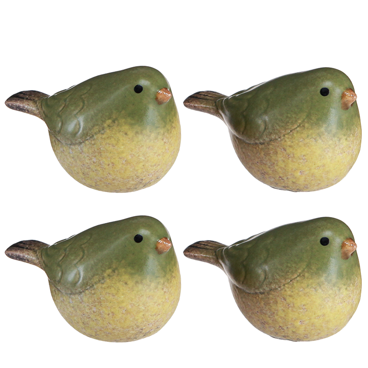 Kleine keramische vogel keramiek decoratie lentegroen 8,5cm 4 st